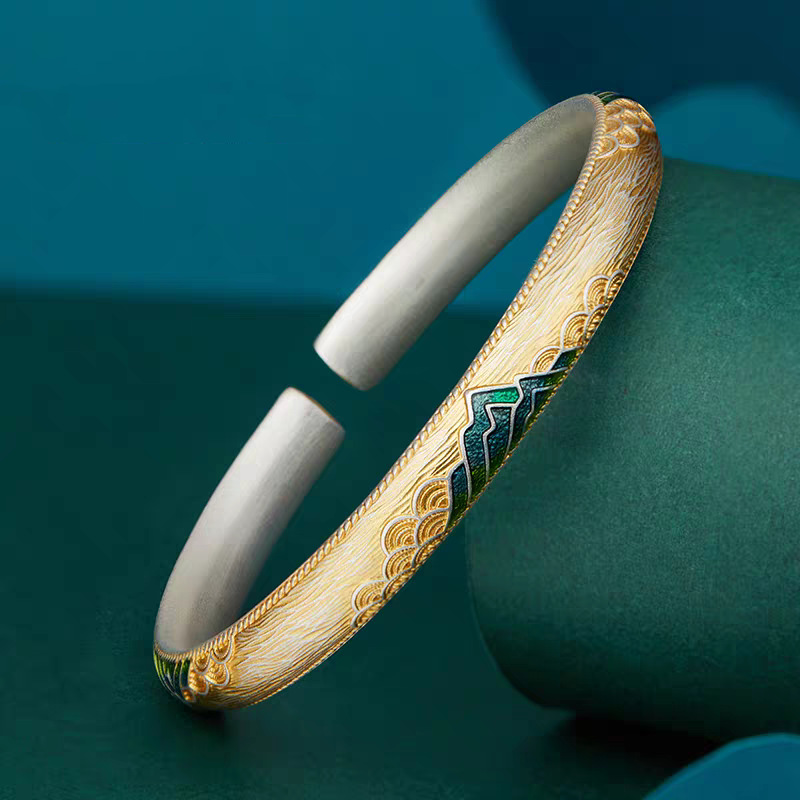 新しい中国風のQianli Jiangshanブレスレット、中国風、レトロ、エレガント、クラシック、シンプル、多用途、軽い高級感、オープンブレスレット