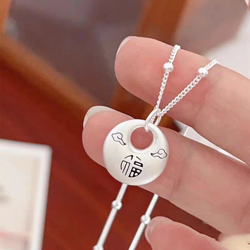 新しい中国風の祥雲小太福国民トレンドネックレス女性の安全バックルペンダントライト高級ニッチシンプルなネックレスガールフレンド用