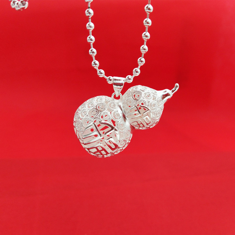 白銅の銀メッキのヒョウタンのペンダントの文芸中国風の国の潮の透かし彫りの福の字のヒョウタンのペンダントは友達の祝日の贈り物を送ります。