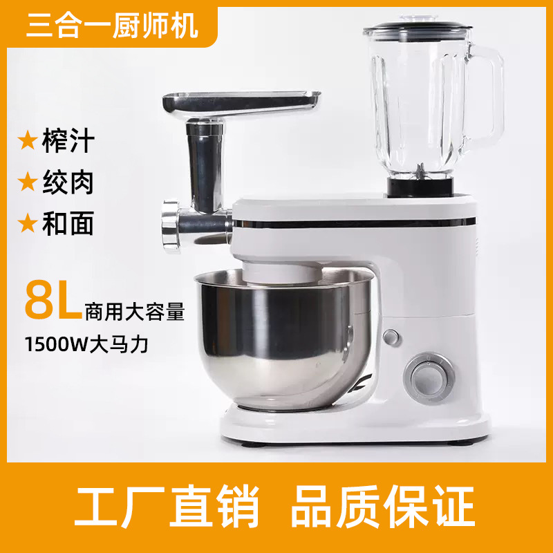 家庭用オールインワン多機能シェフマシン8リットル生地ミキサー、業務用生地ミキサー、ジューサー、ミートグラインダーの国境を越えた供給