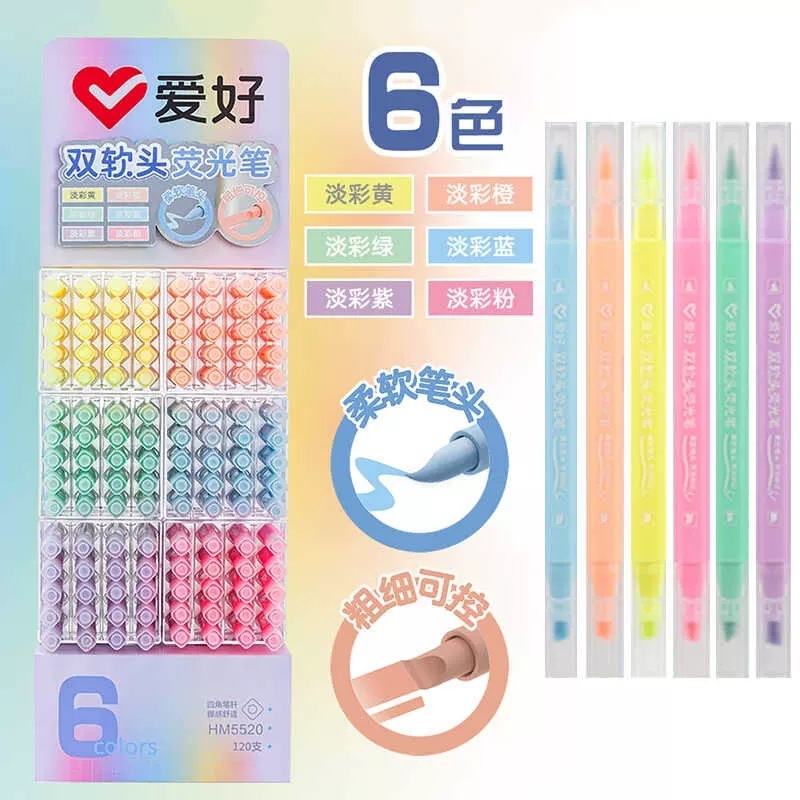 趣味HM5520ダブルソフト蛍光ペンソフト淡いカラー学生重点マーカーペンダブルカラーマーカーペン