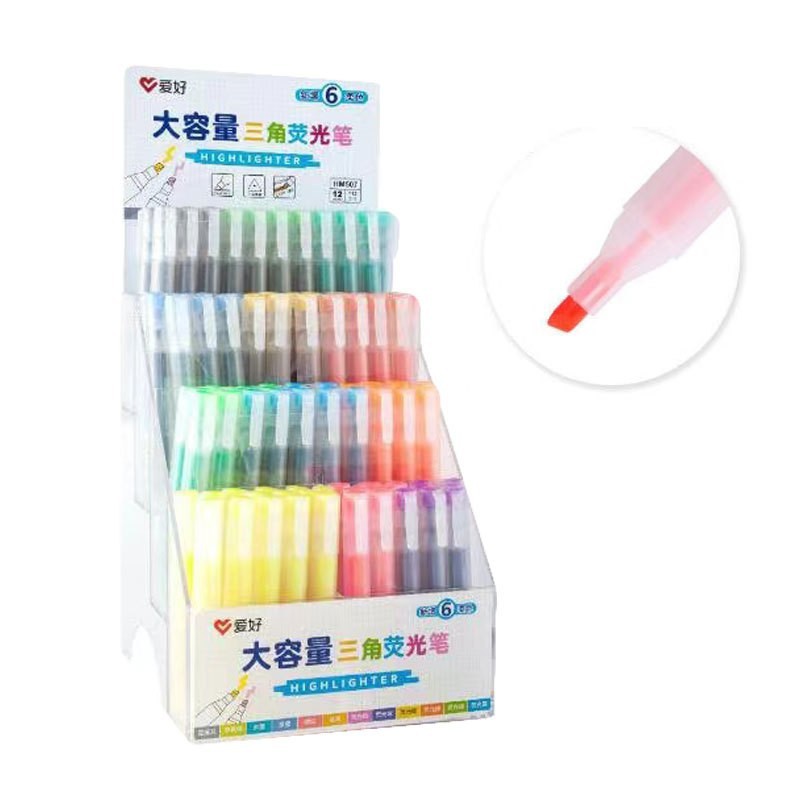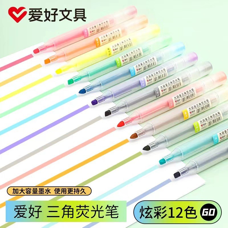 趣味HM507蛍光ペンセット学生用大容量三角棒12色画重点マーカーペン手帳ペン