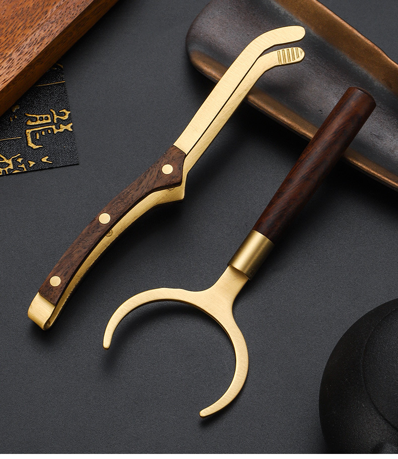 実木黒檀部品茶道六君子カンフー茶器セット銅木五点セット茶挟み