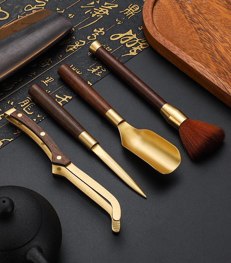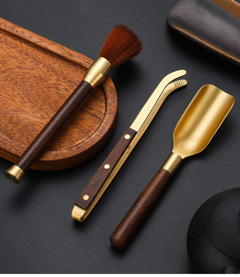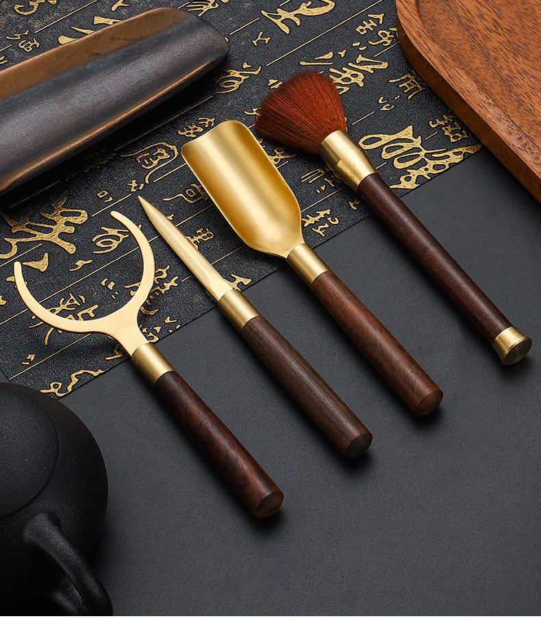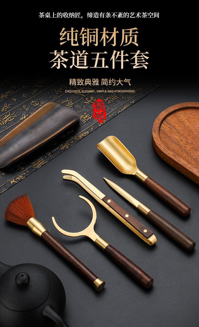 銅木茶道五君子銅木茶道六君子セットカンフー茶器部品大全君子茶刀黄銅
