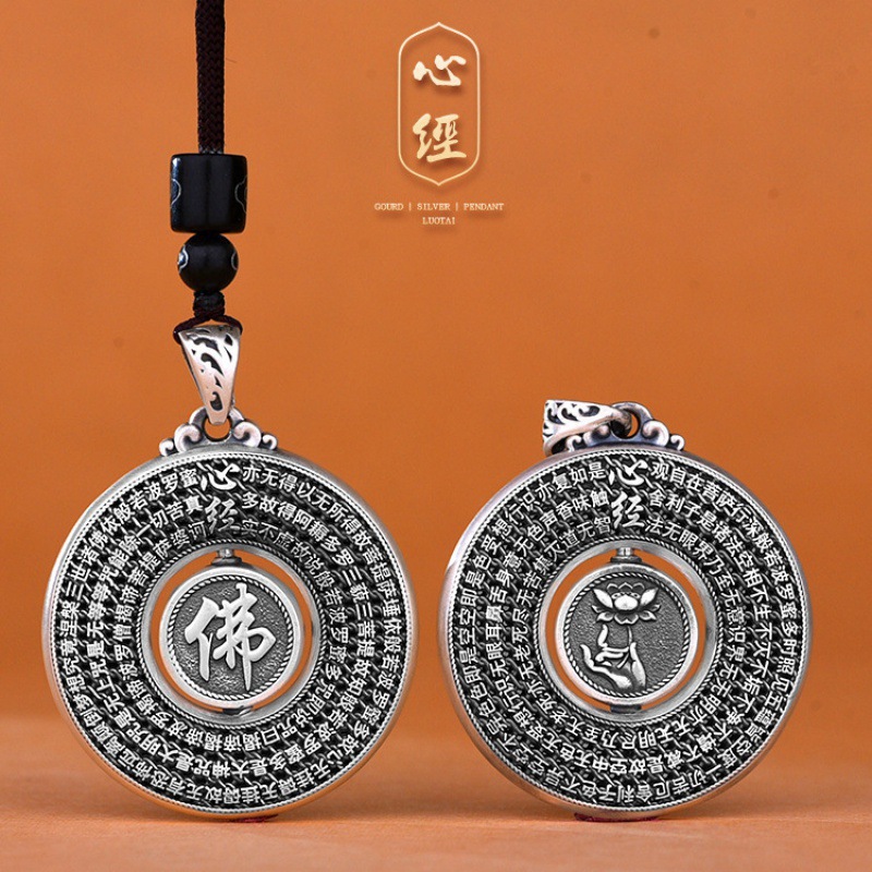 テリー足銀999回転仏蓮心経ネックレスペンダント国風男女平安ボタン回転可能