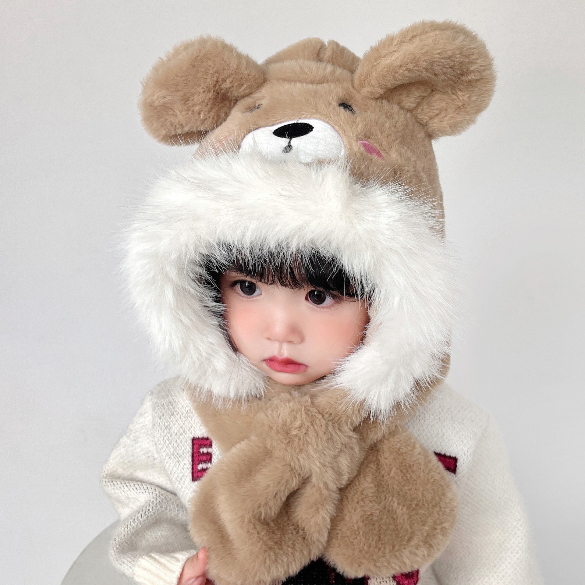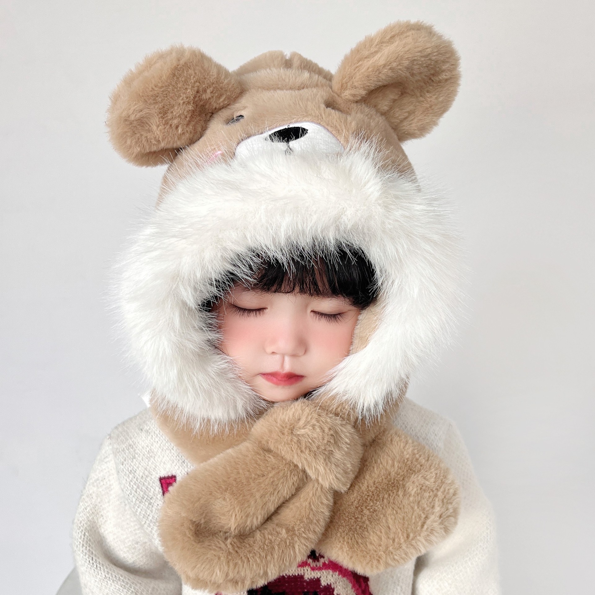 冬の男女児童一体帽子セットアニメ熊人形のぬいぐるみが首を囲んでかわいい保温快適な首を囲んでいる