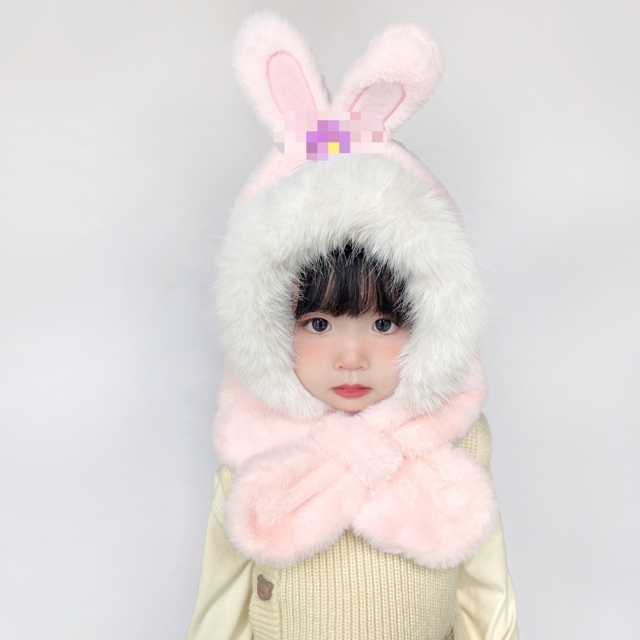 2025 新しい子供のスカーフ秋と冬ぬいぐるみ親子暖かくてかわいい肥厚漫画模造ウサギの毛皮のベビースカーフ