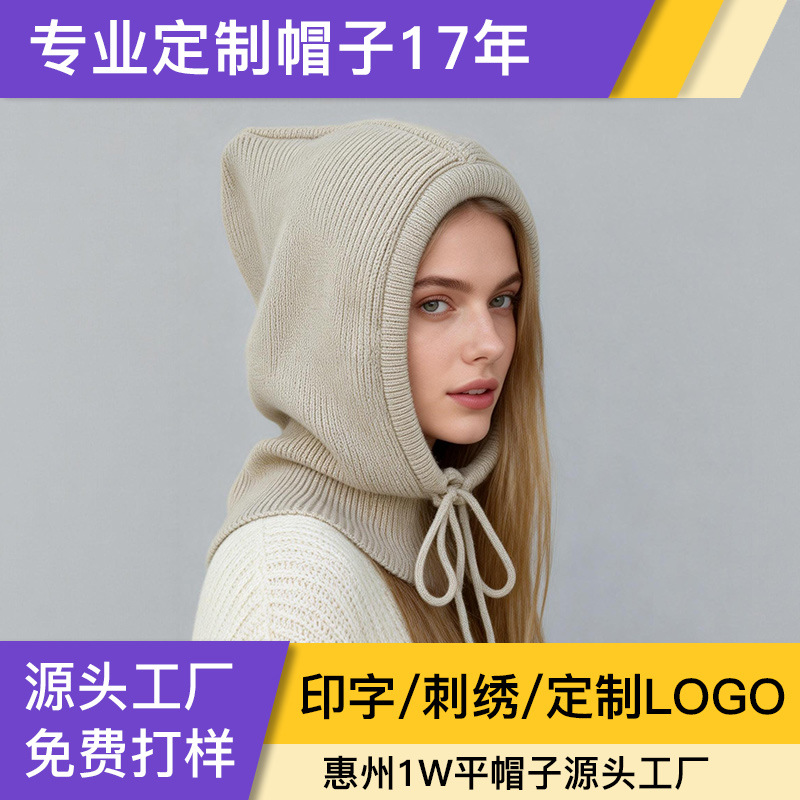 跨境爆款巴拉克拉法帽 洋气秋冬时尚保暖围脖一体毛线针织帽女