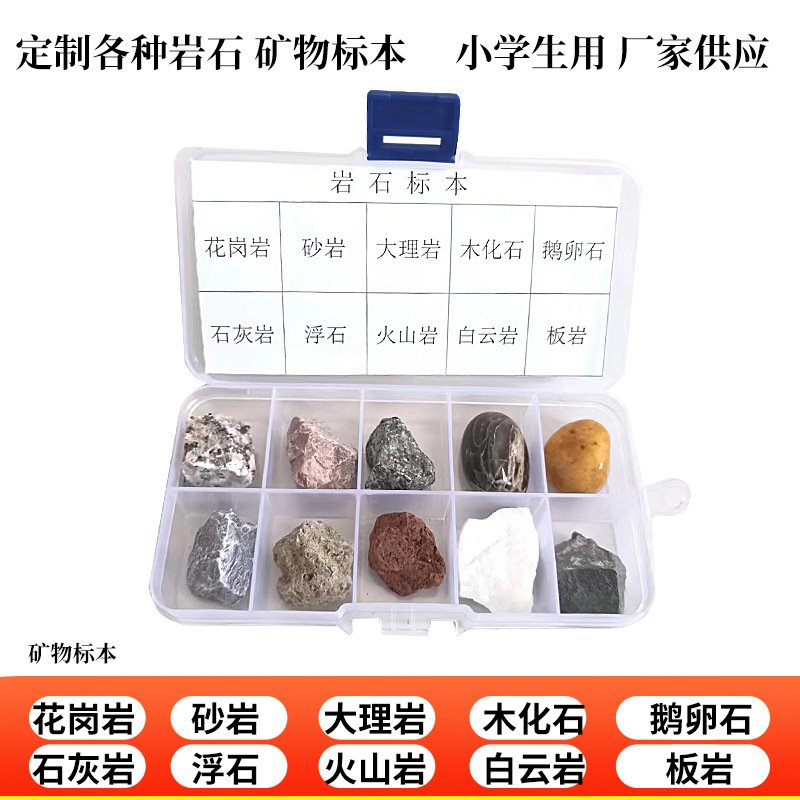水晶原石鉱石標本箱4年生岩石標本鉱物標本10格小学生教育標本