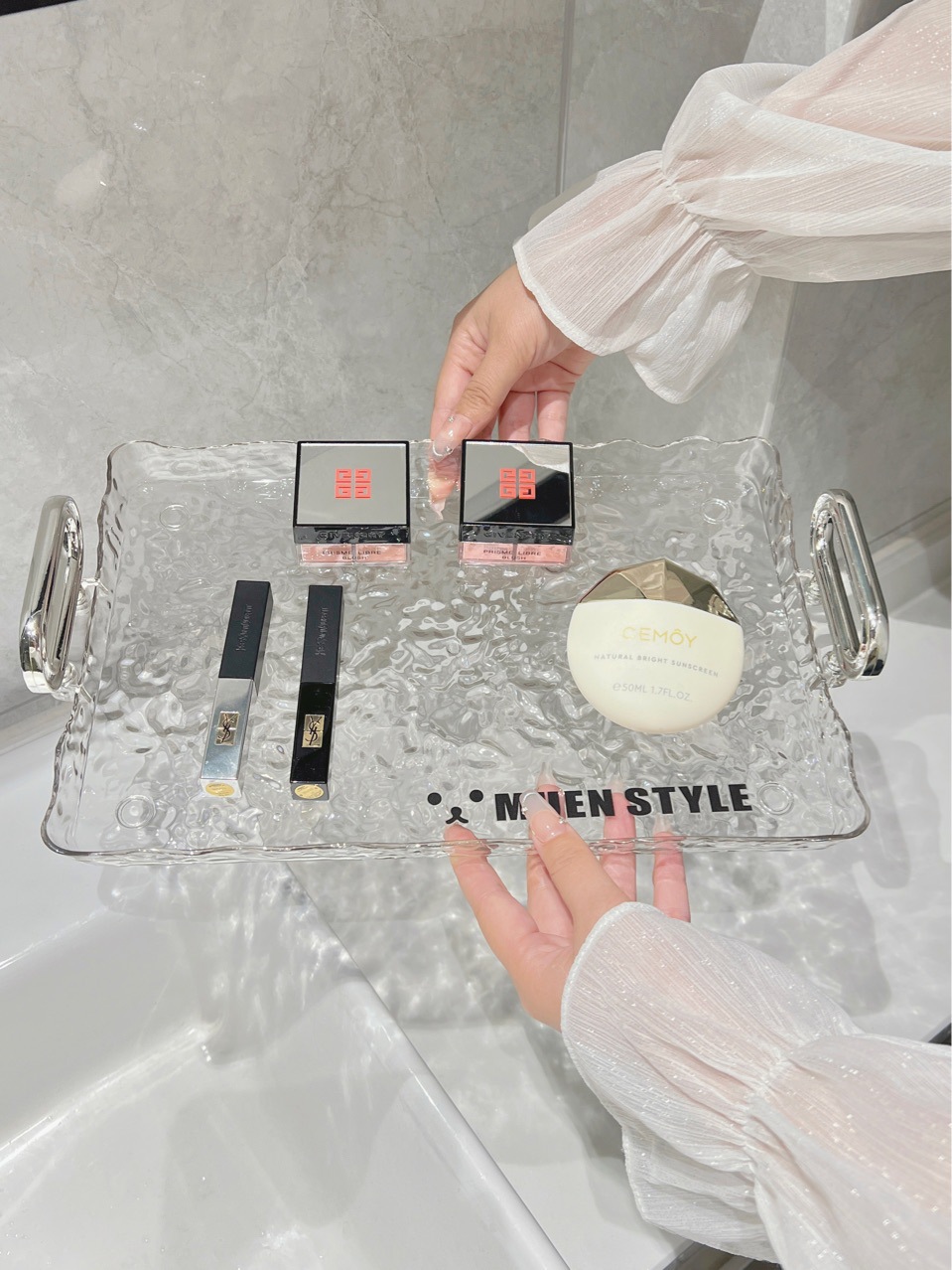 軽くて豪華なコップのトレーの長方形の家庭の客間の高級感のアクリルのアイデアは精巧にお茶のコップのお茶の皿を入れます。
