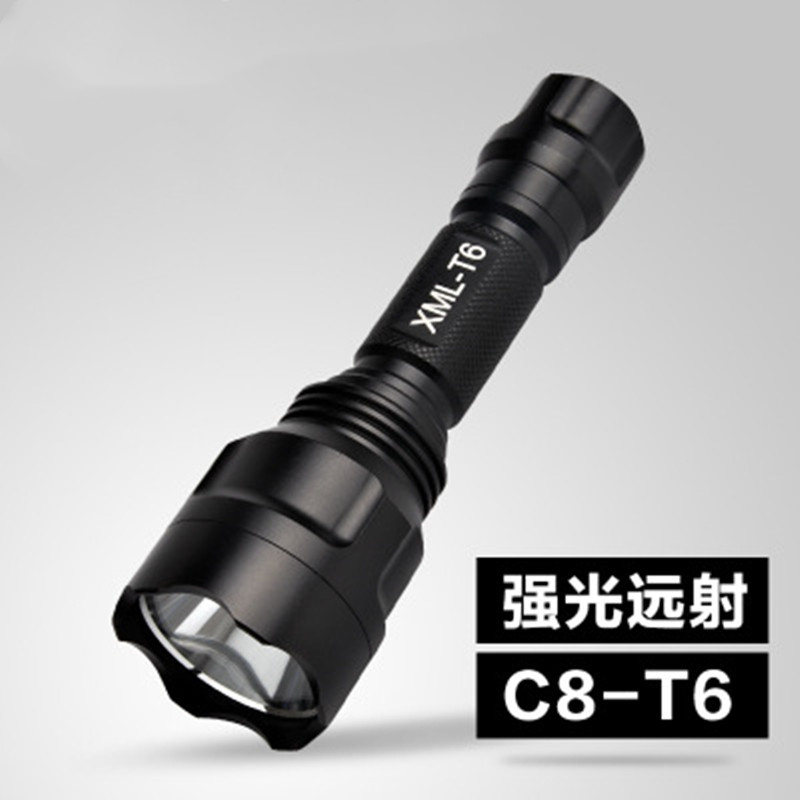 C8 强光手电筒 Q5/T6 LED铝合金手电户外迷你防身夜骑户外家用灯