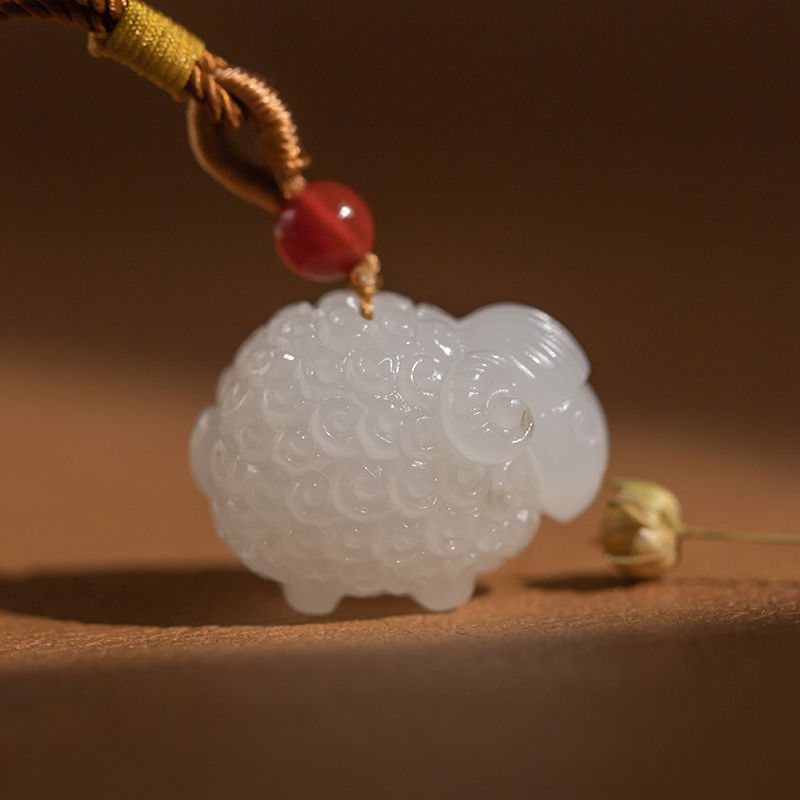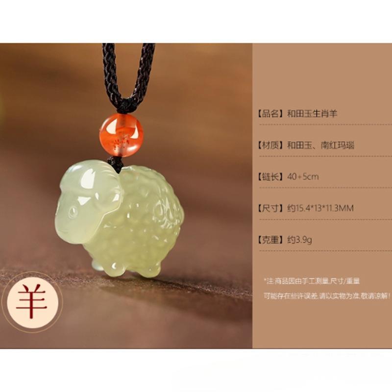 天然和田玉手作り十二生肖白玉羊ペンダント男女同金赤ちゃん本命年玉ペンダントネックレス