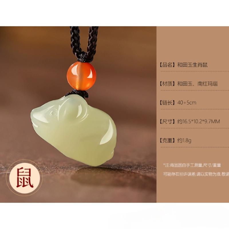 天然和田玉十二生肖ペンダントネックレスストラップ男女子スタイルシンプルなアクセサリーストラップ