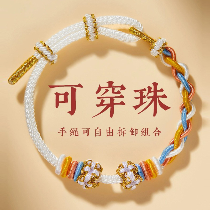 手編みDIYブレスレット完成品、女性向け軽奢で個性的な繊細な赤い紐編みブレスレット、金珠を通すことも可能