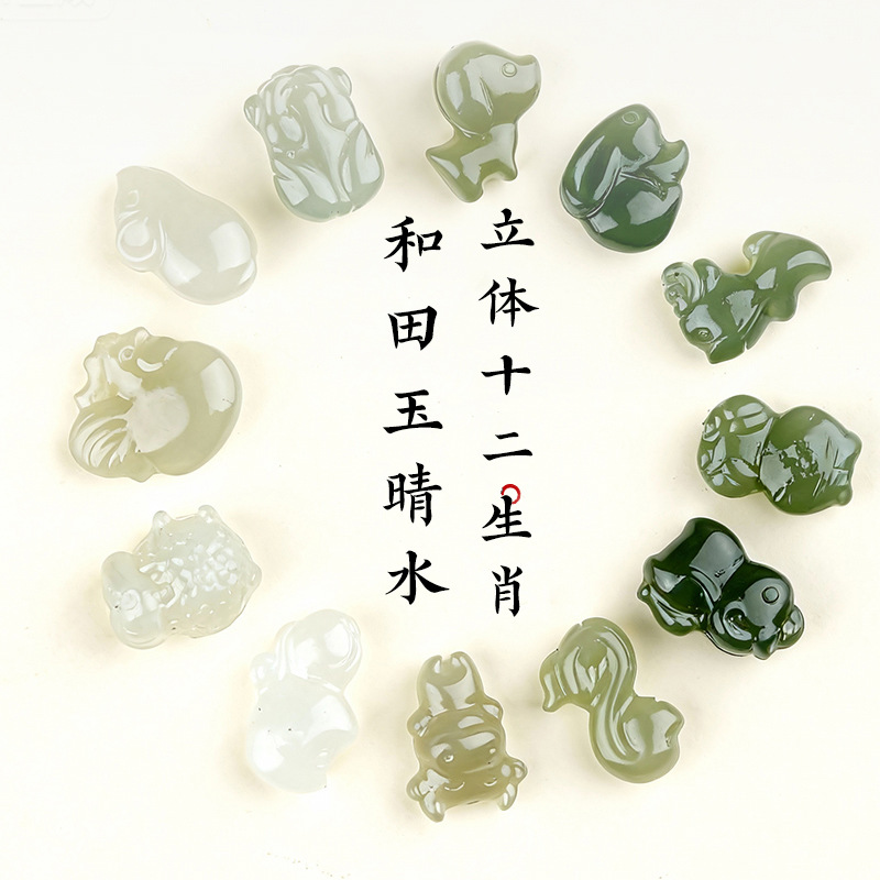 天然和田玉立体十二生肖吊坠配件DIY饰品挂件项链深浅晴水和田玉