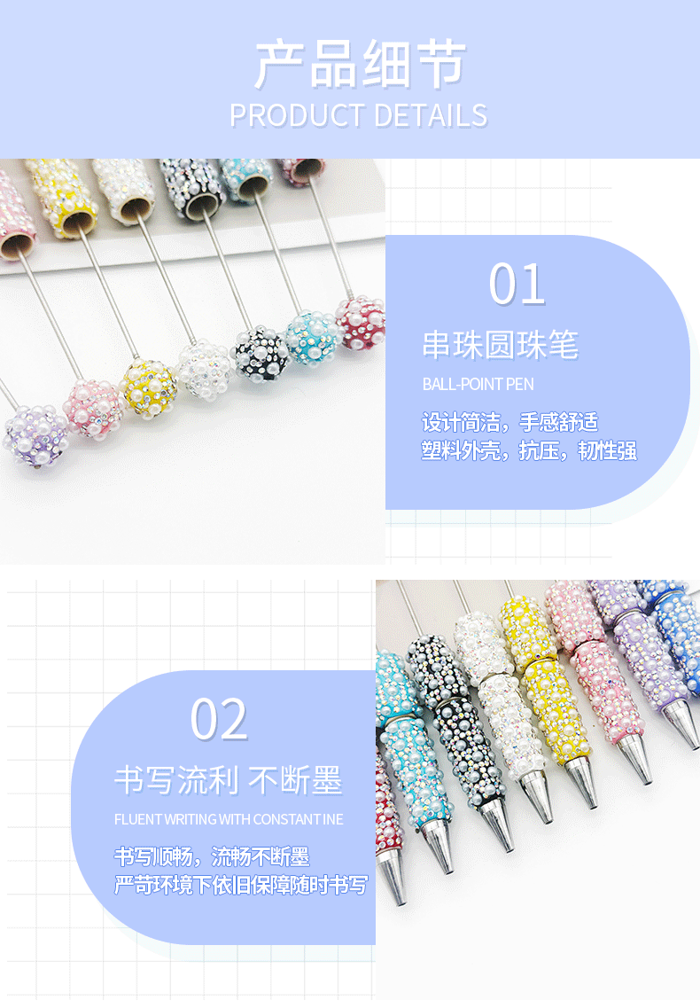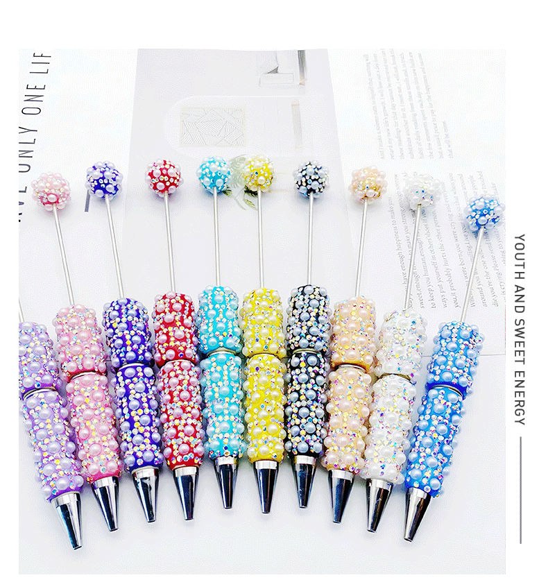DIY パールフルダイヤモンドビーズペンヘビーデューティダイヤモンドボールペンパズルホット販売学生文具ギフト在庫卸売