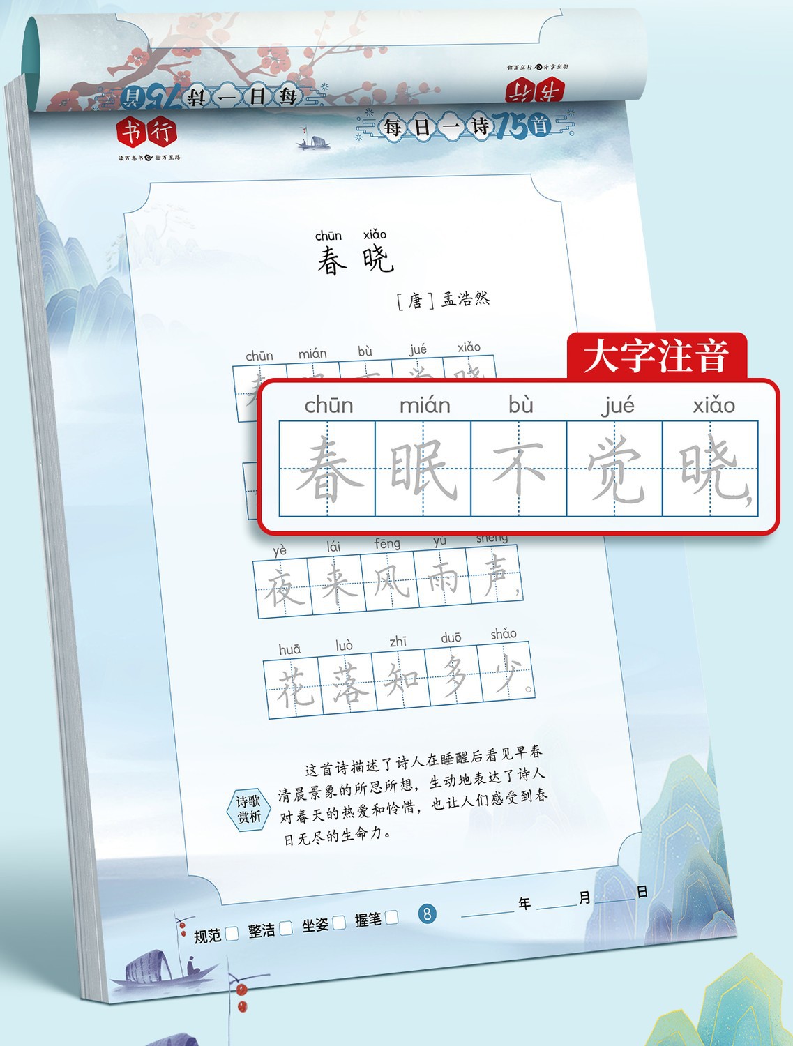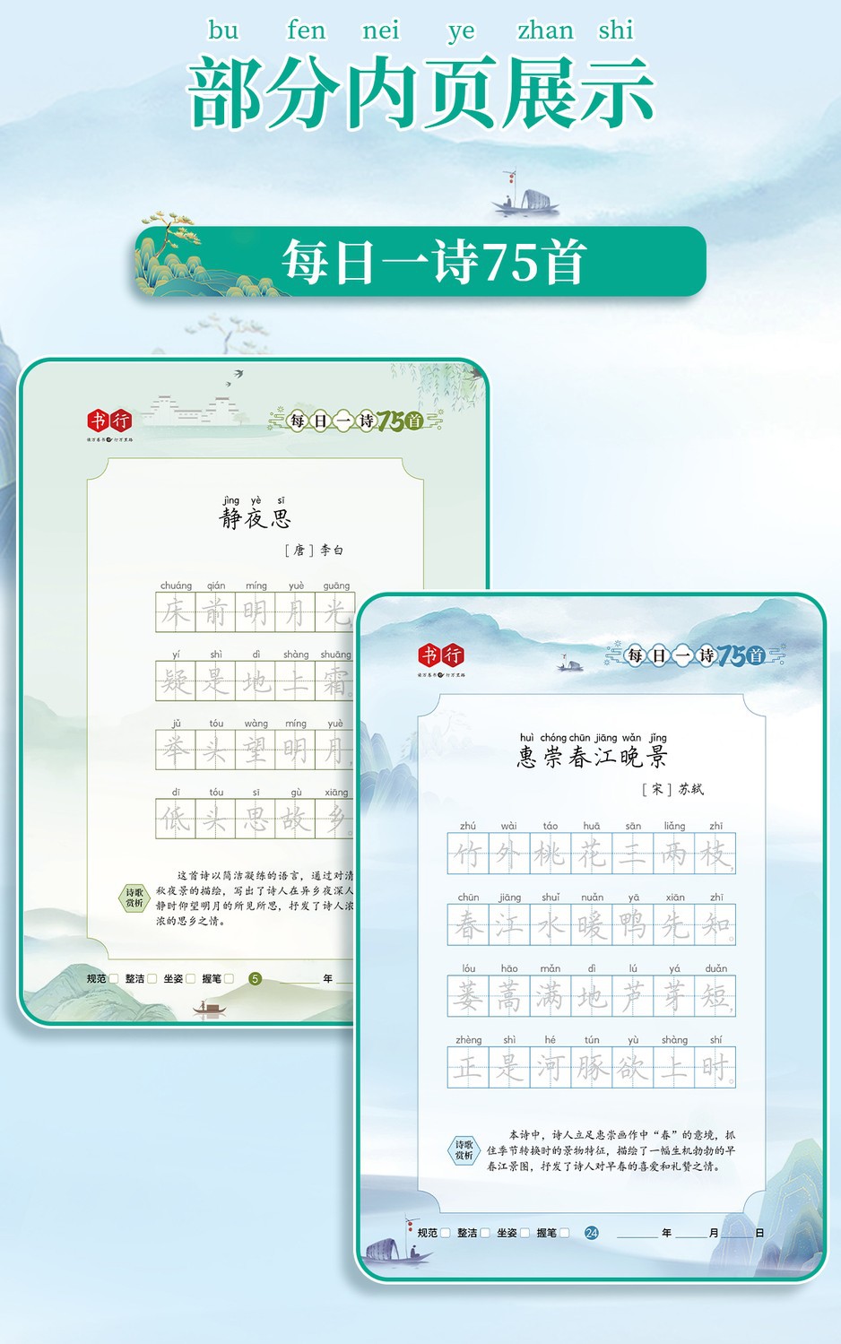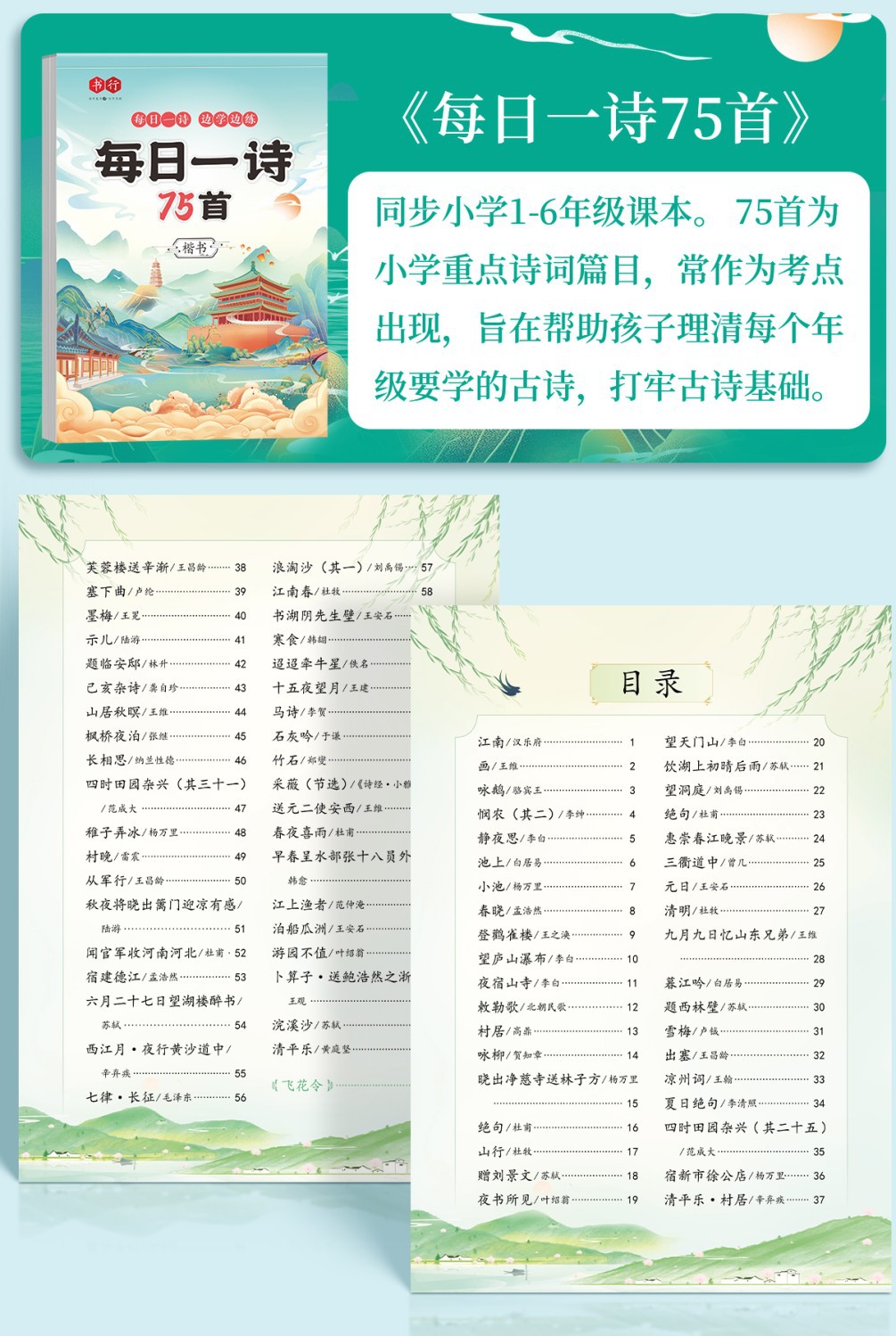 小学生毎日一詩古詩詞練字帖1-6年生国語75 80首唐詩宋詞楷書字帖