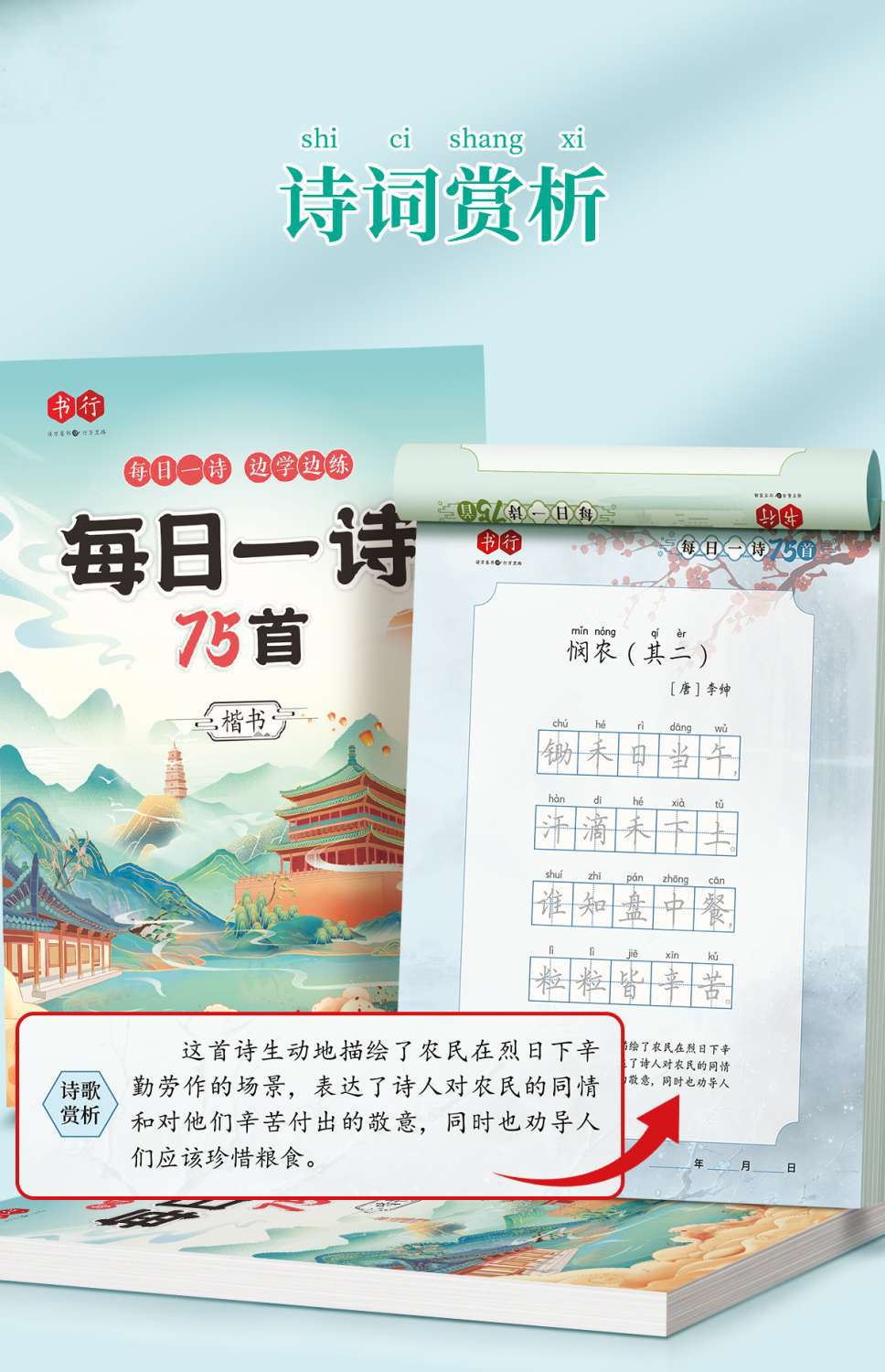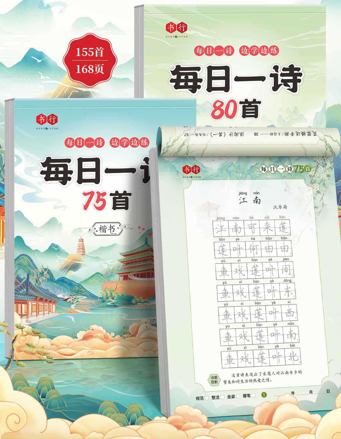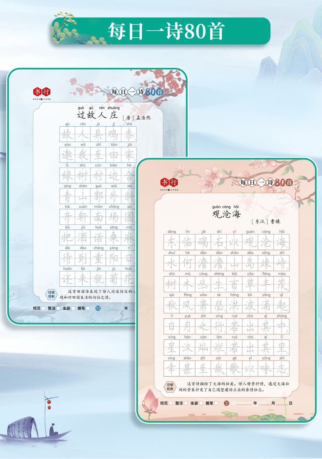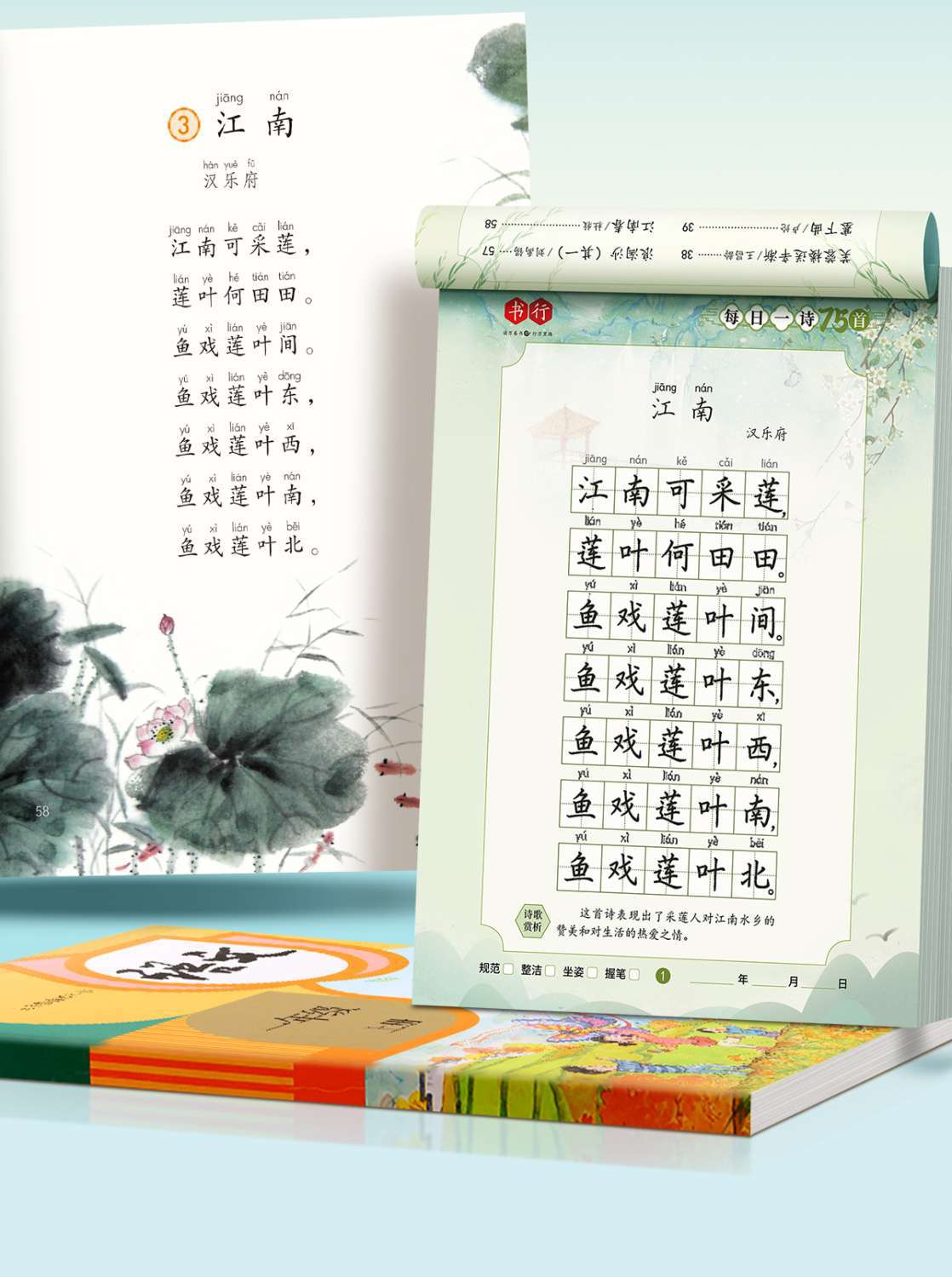 小学生毎日一詩古詩詞練字帖1-6年生国語75 80首唐詩宋詞楷書字帖
