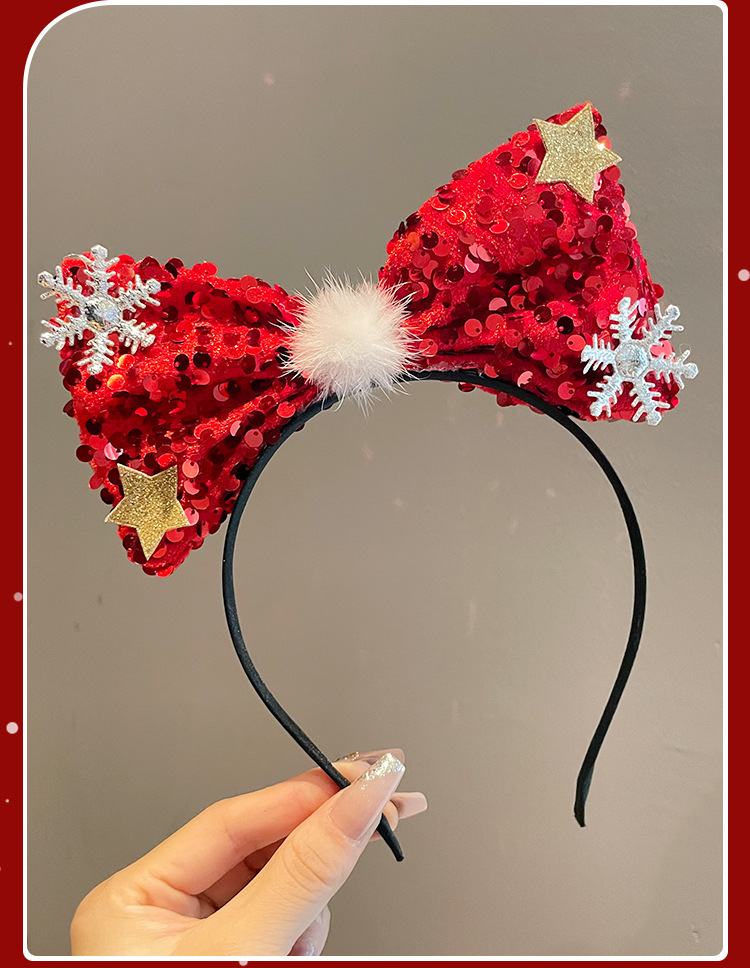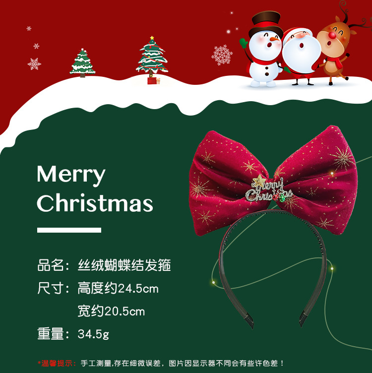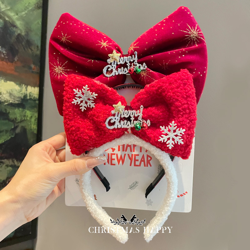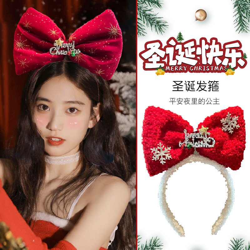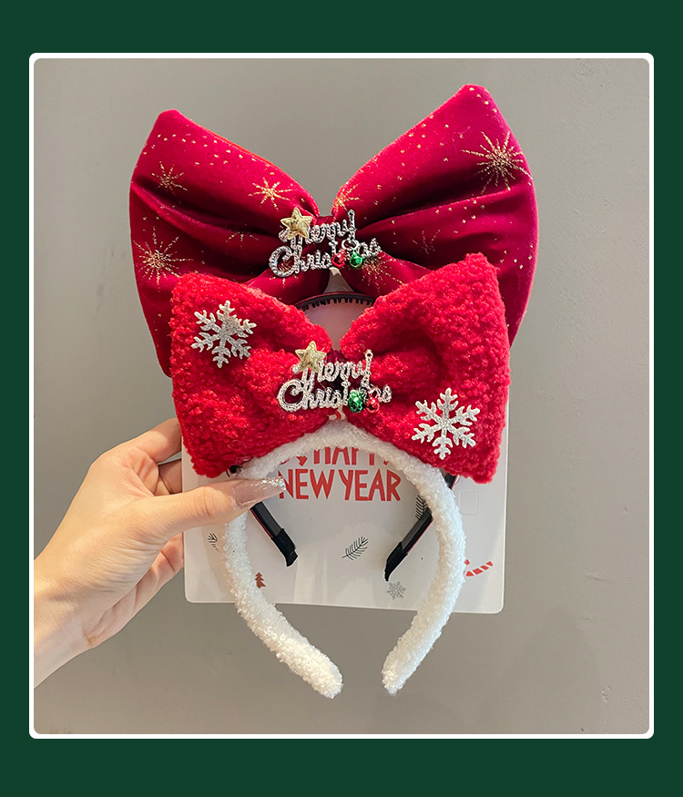 2024新作クリスマス祭り赤い蝶結びのカチューシャは立体ヘアピンの髪飾りを披露します。
