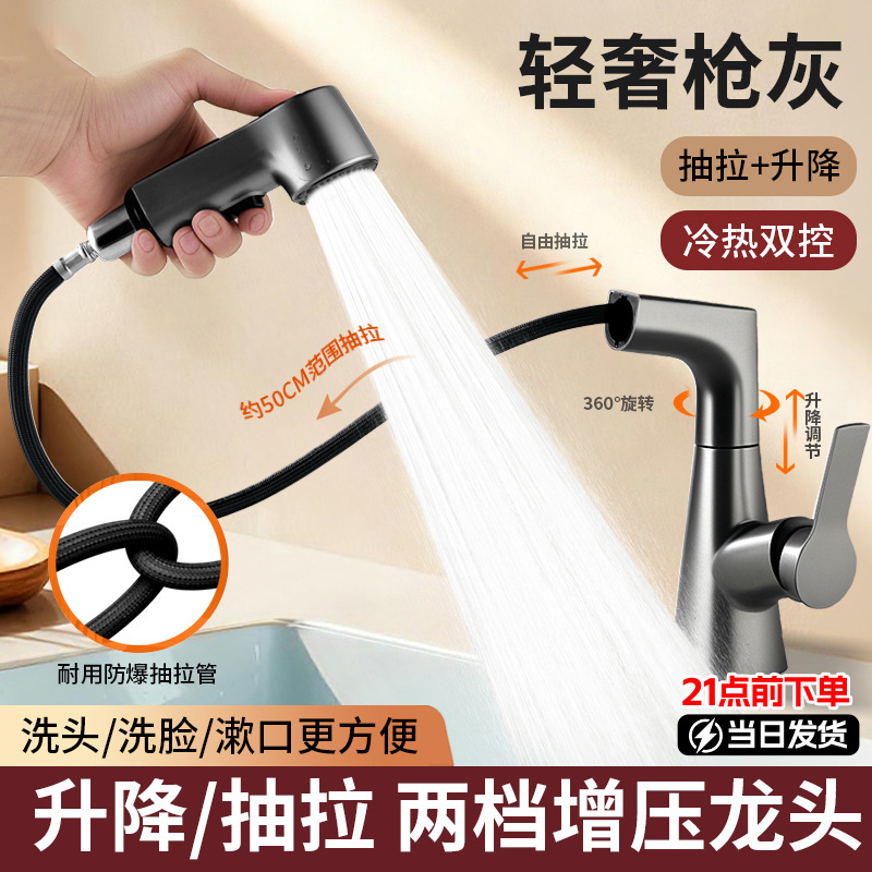 升降抽拉水龙头洗脸盆家用洗手盆抽拉式卫生间面盆冷热水龙头台盆