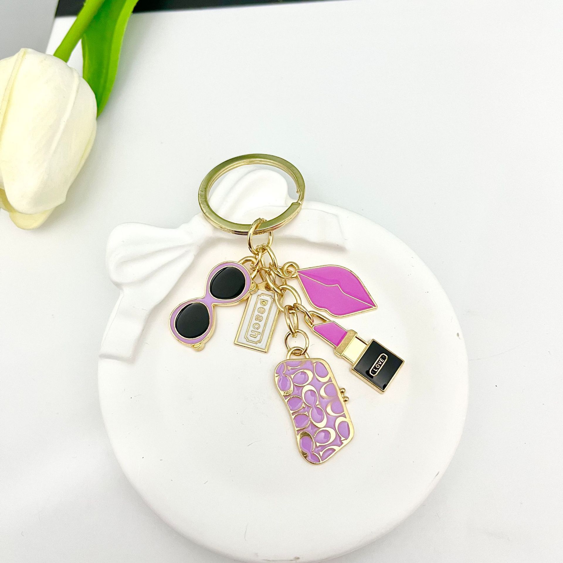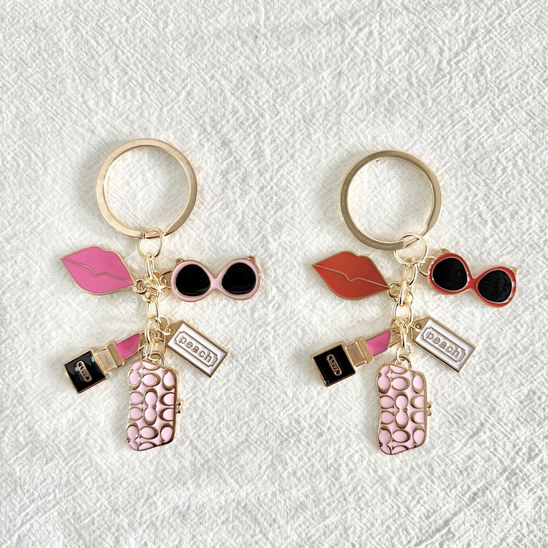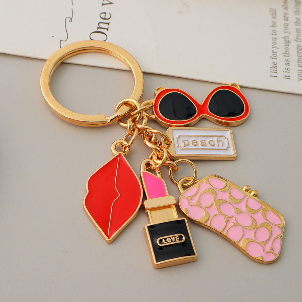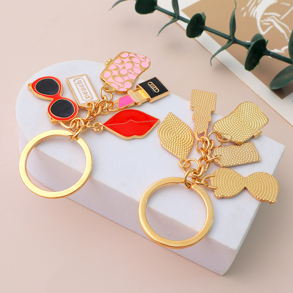 跨境时尚珐琅Kiss口红眼镜钥匙扣合金百搭设计汽车配饰件包包挂件