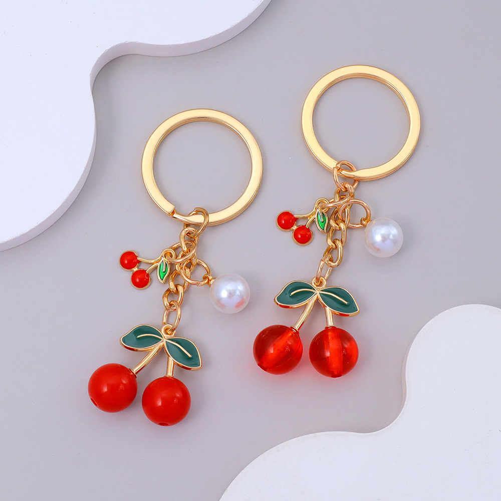 人気の赤いさくらんぼの真珠のペンダントのキーホルダーの女子学生のカバンのペンダントの小銭入れ