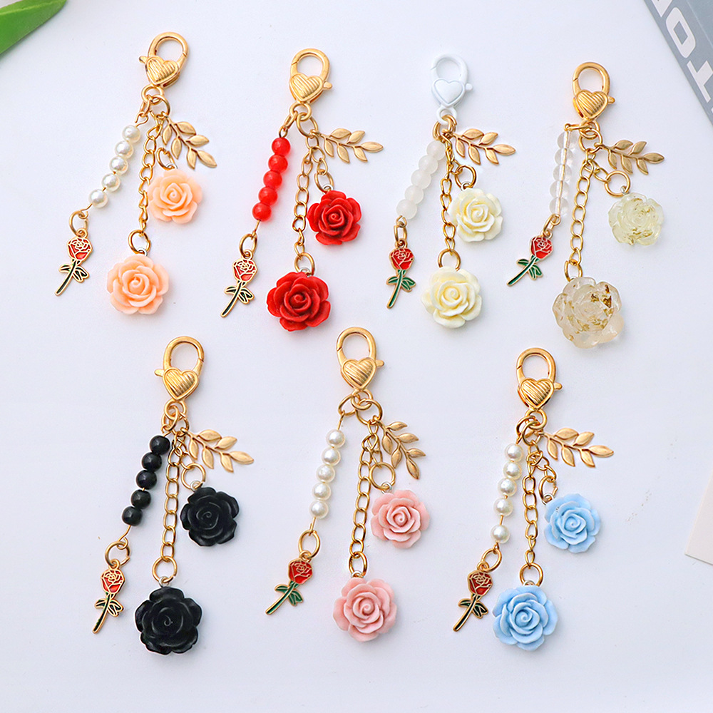 Ins風樹脂山茶花流蘇キーホルダー木の葉花ペンダント女子イヤホンバッグ装飾ストラップ