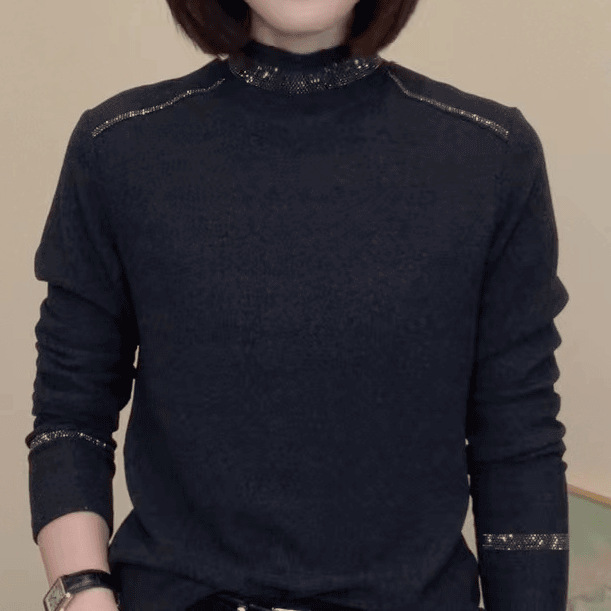 一件代发直播爆款2025冬季款时尚拼色洋气百搭减龄气质内搭打底衫