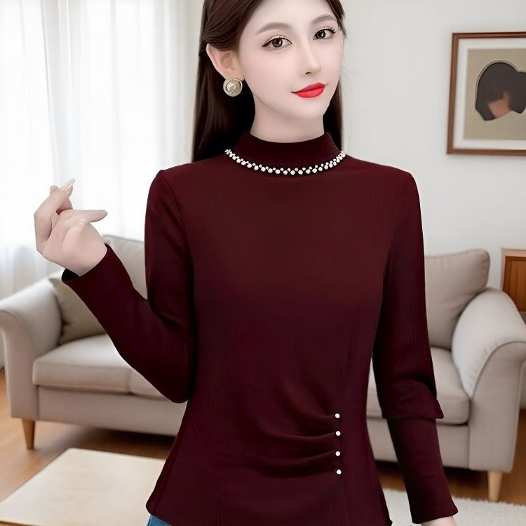 原版一件代发直播爆款2025冬季新款时尚纯色洋气百搭减龄打底衫女