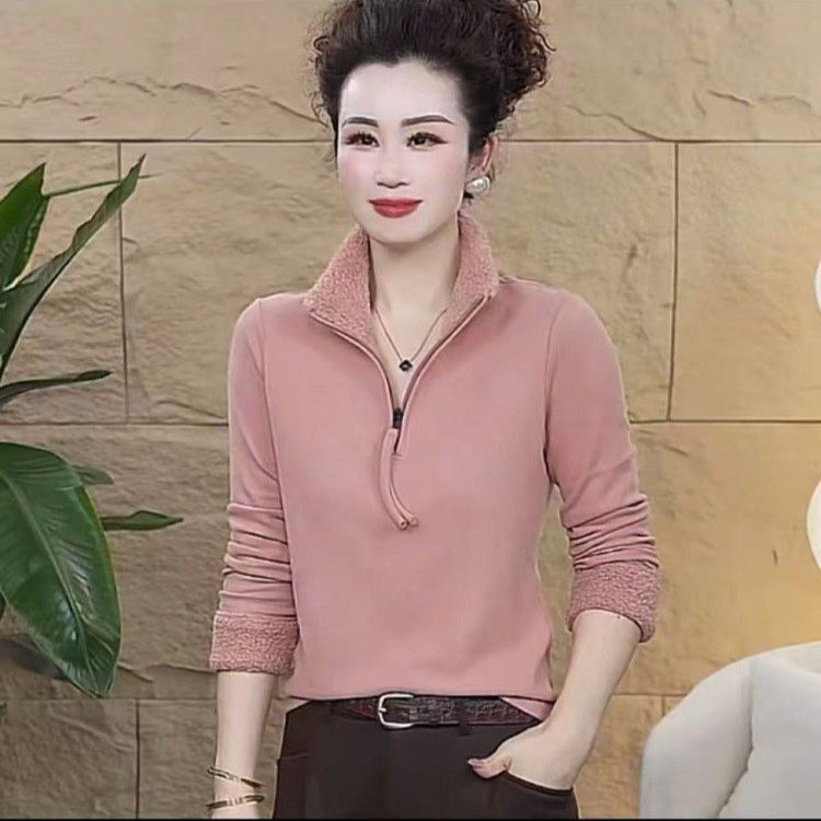 代理生中継起爆金2024冬の新型ファッション両面パイル半高襟保温ホットドリルのシャツ女