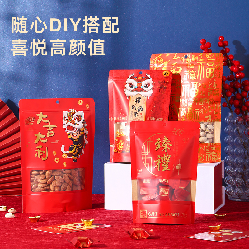 年物赤包装袋ナッツスナックドライフルーツ食品級密封クラフト紙袋プレゼント自立チャック袋