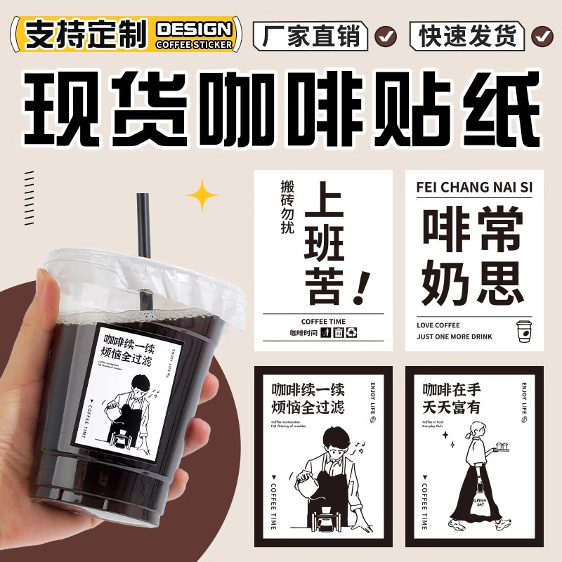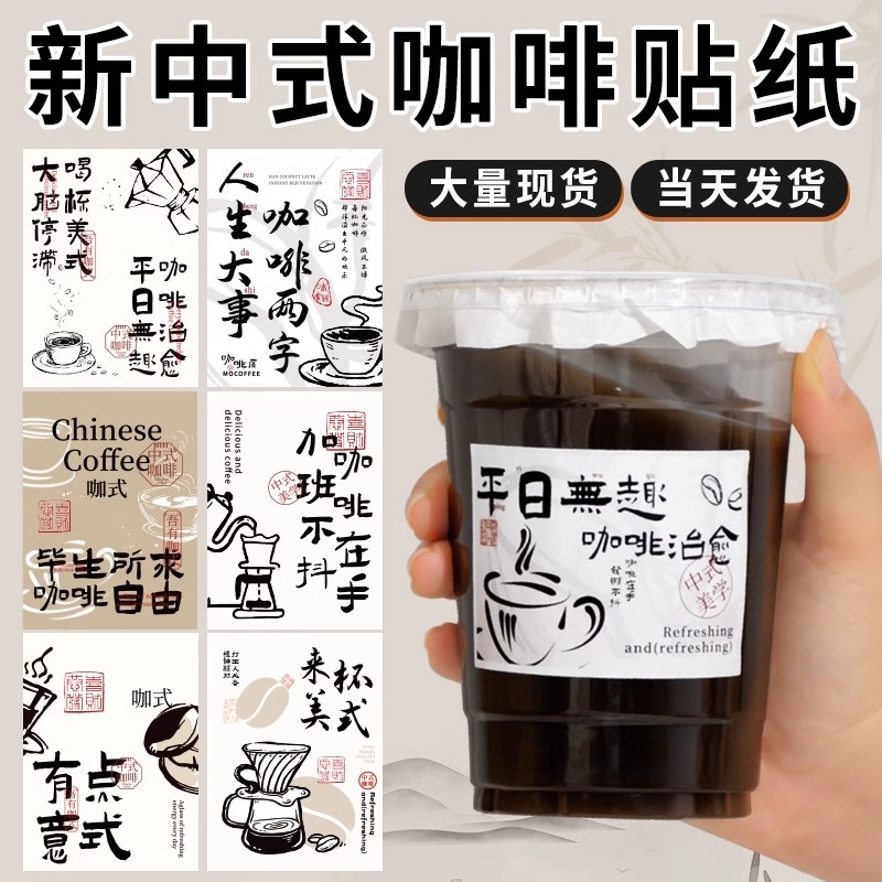 新しい中国風のコーヒーステッカー落書きイタリアアメリカンテイクアウトラベル防水包装シールドリンクストリップカップステッカー
