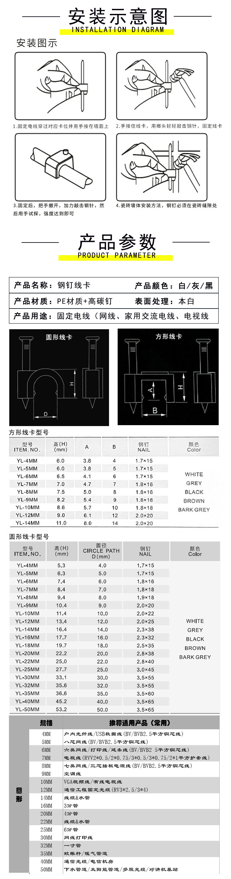 メーカー直販鋼釘線カード円形顕線カード6 8 10 12 14号電線固定器クリップ固定クリップ