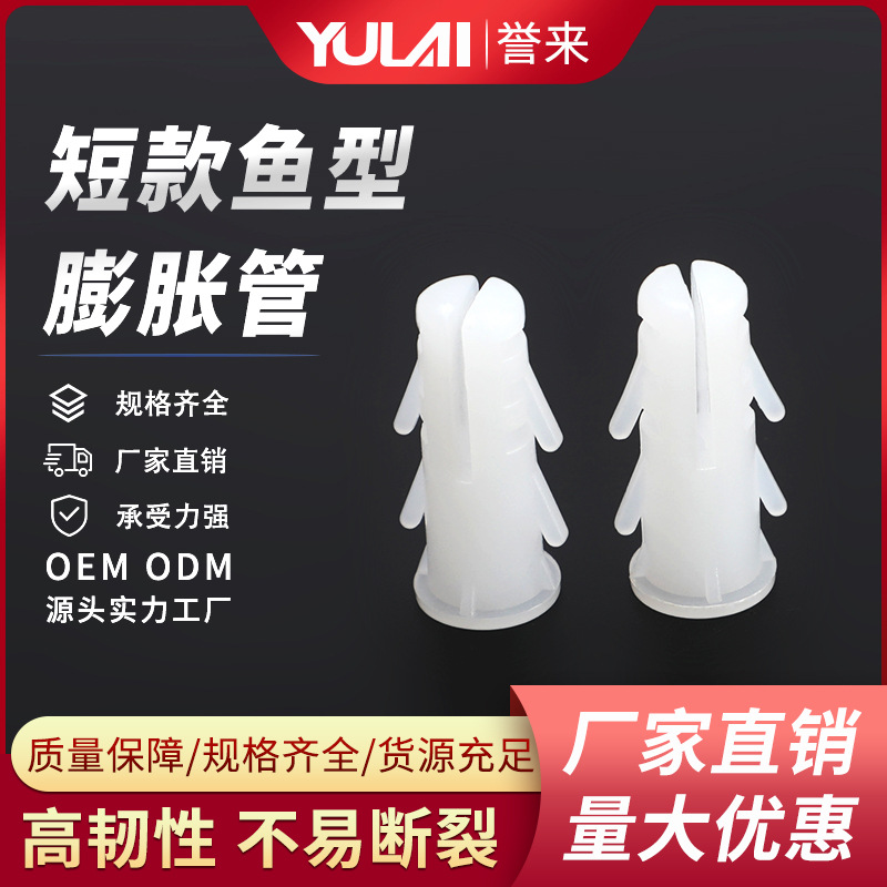 メーカーの短い魚の形のプラスチックの膨張管の白い辺のゴムのプラグの膨張管のカーテンの食器棚の膨張ネジ