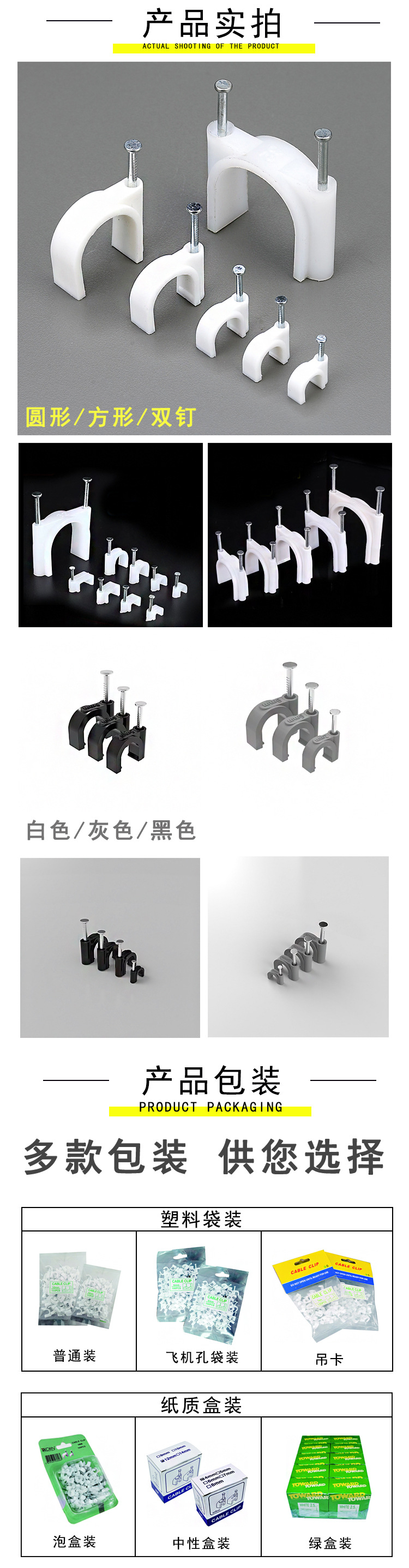 Chs長虹丸型鋼釘線カード4-50プラスチックナイロン電話線固定線ボタン壁釘圧線クリップ