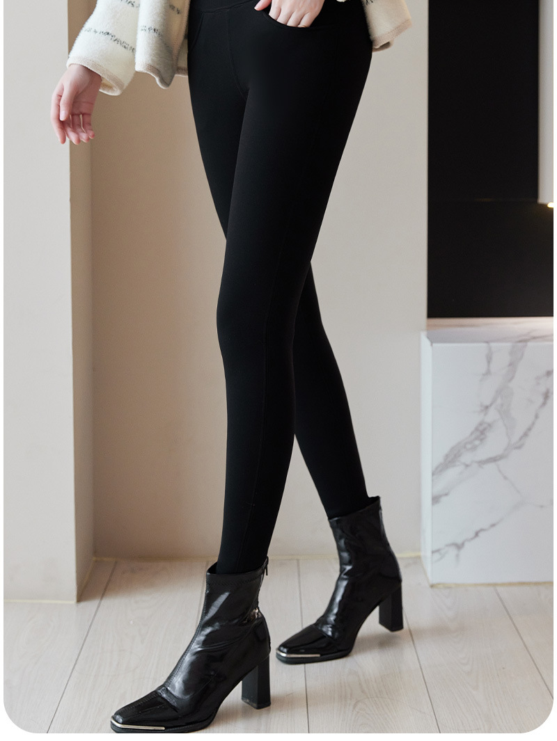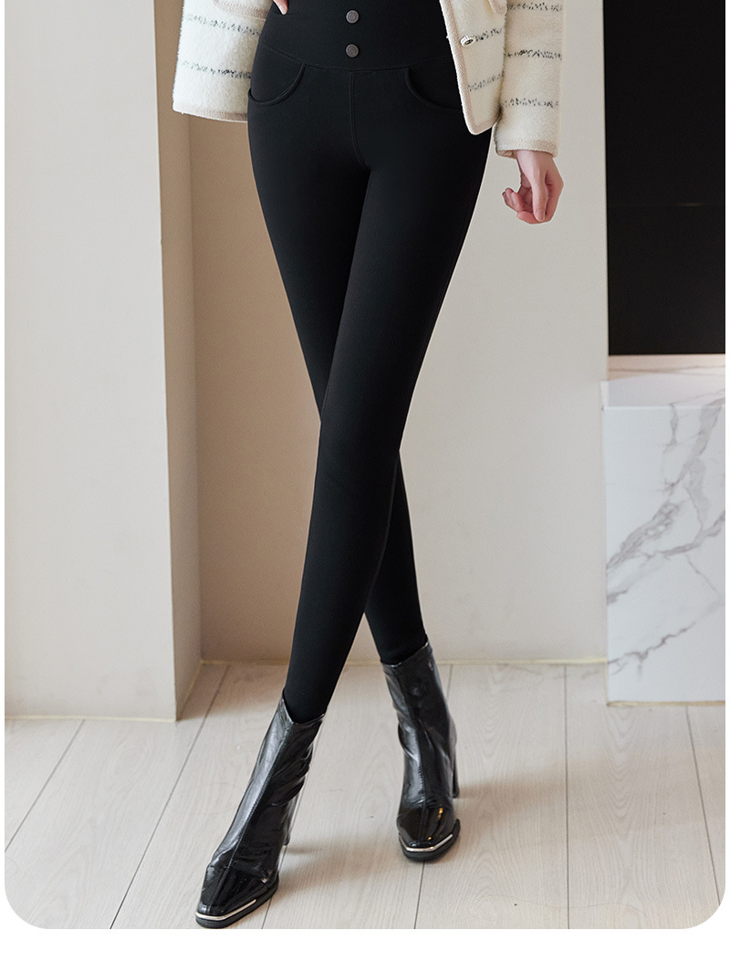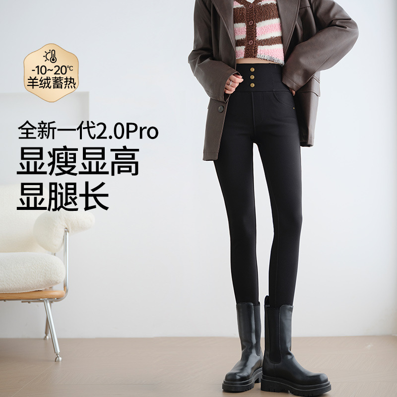 2539羊绒黑色高弹加绒高腰小黑裤秋冬显瘦修身紧身大码小脚打底裤