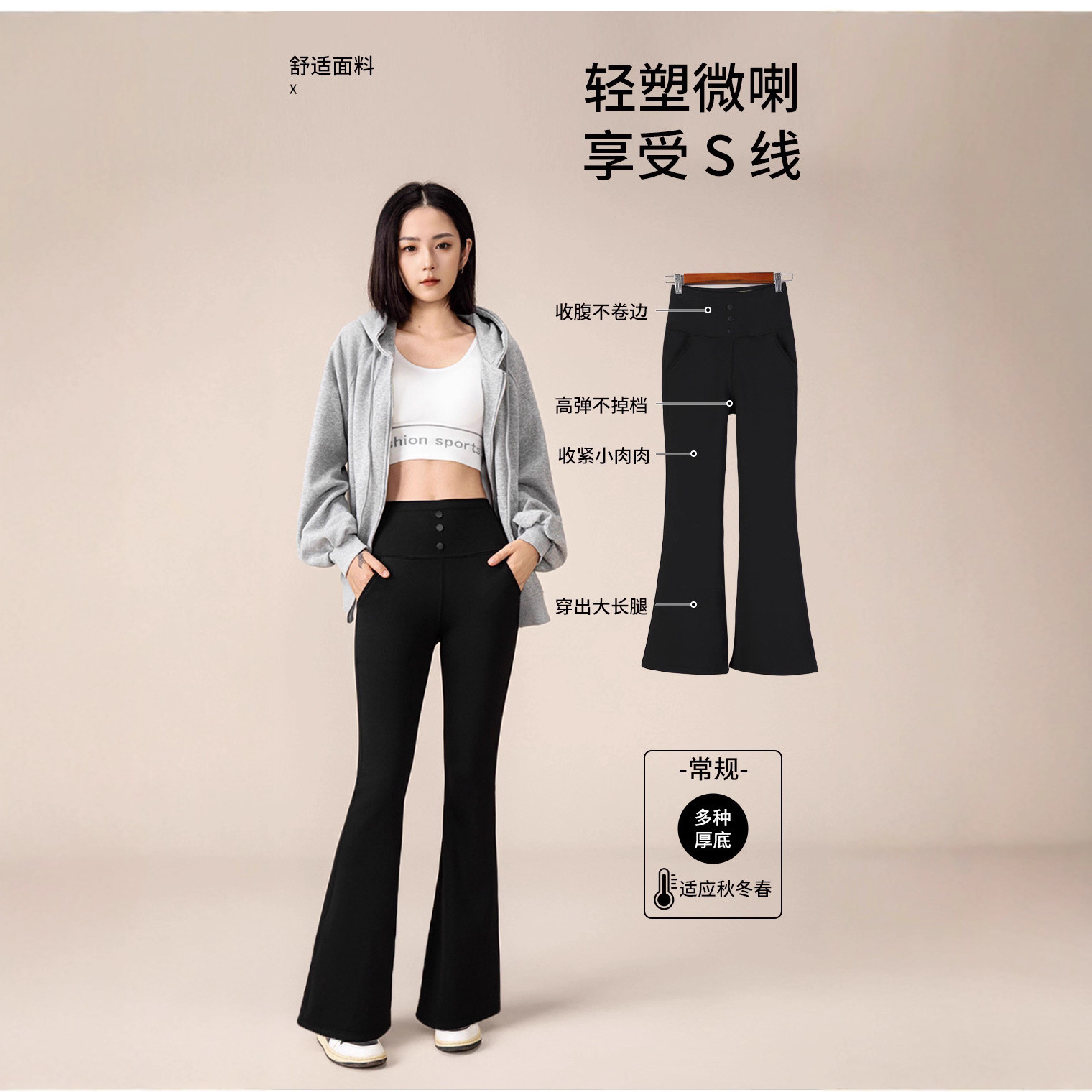 加绒加厚喇叭裤高腰收腹提臀微喇瑜伽裤女外穿锦纶薄款修身显瘦高