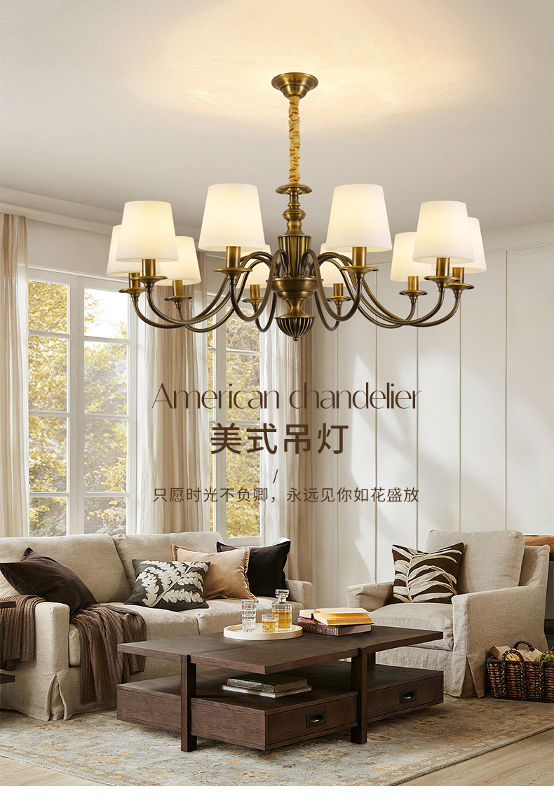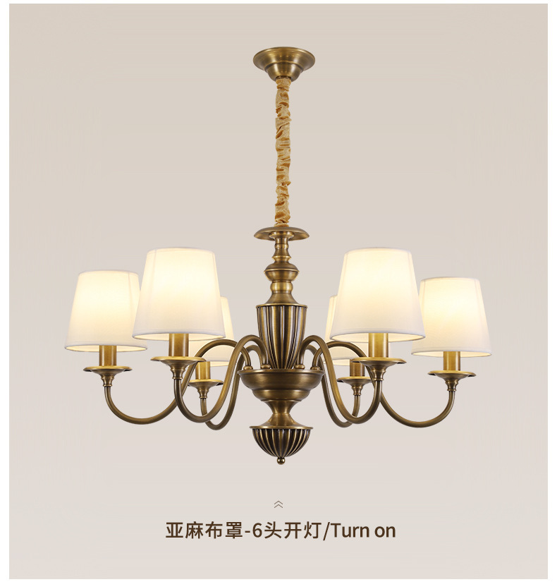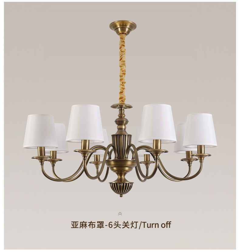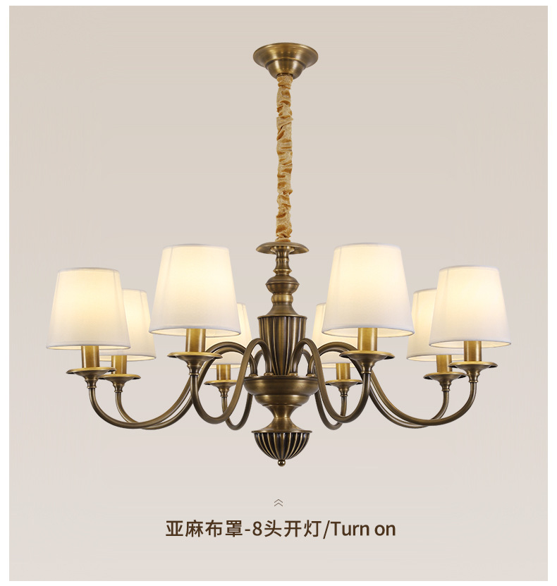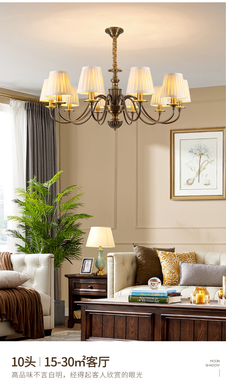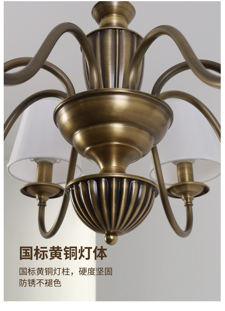 アメリカンオール銅シャンデリアリビングルームライトメインライトシンプルモダンレトロ中世クリームスタイルレストランベッドルームライト66650