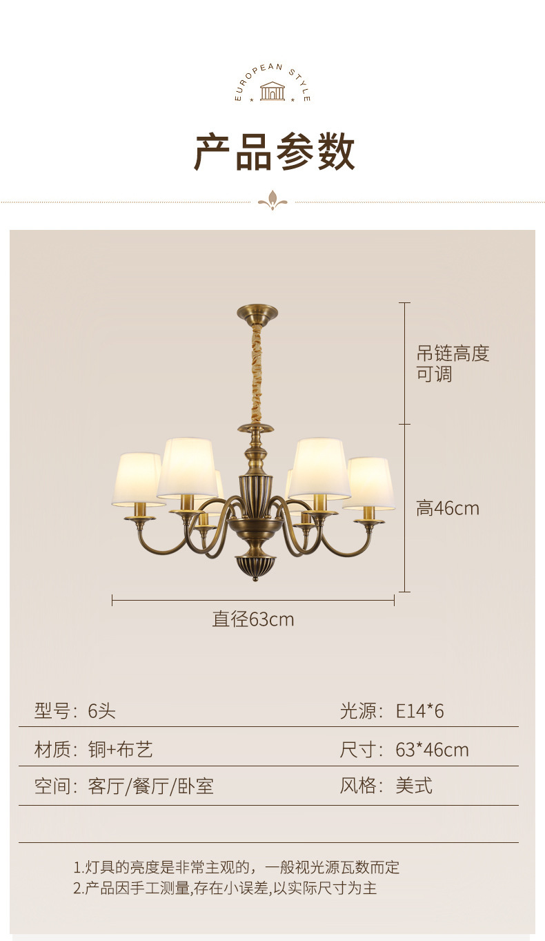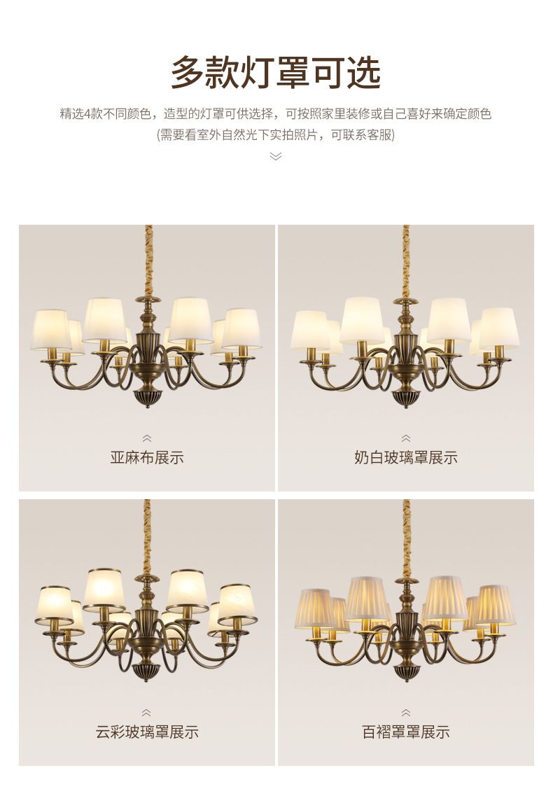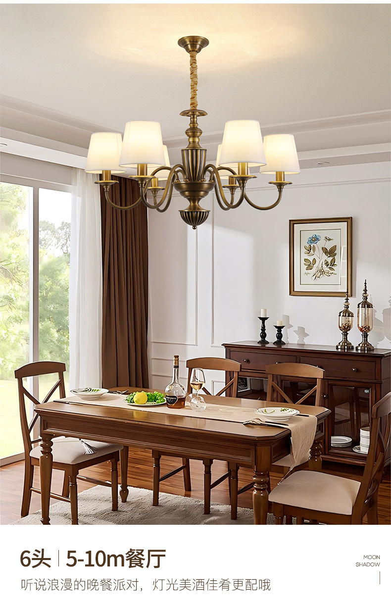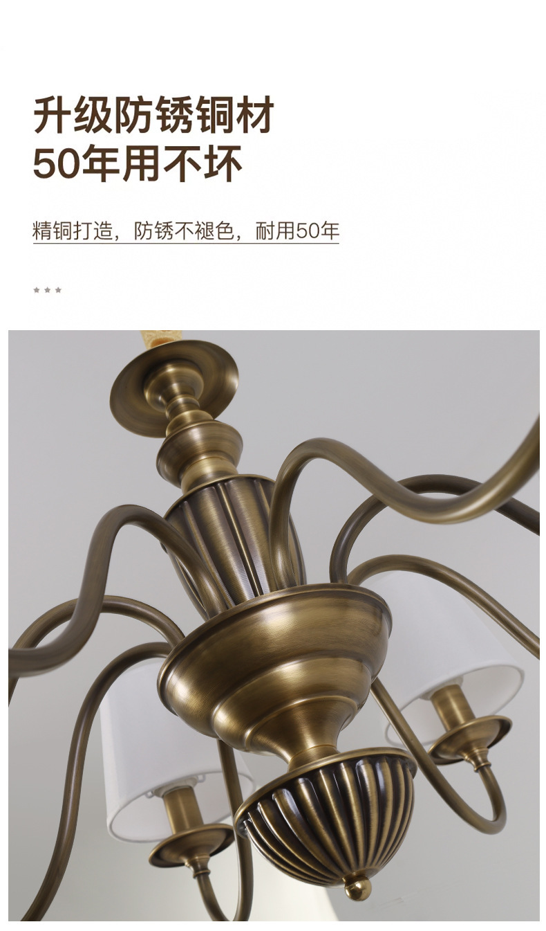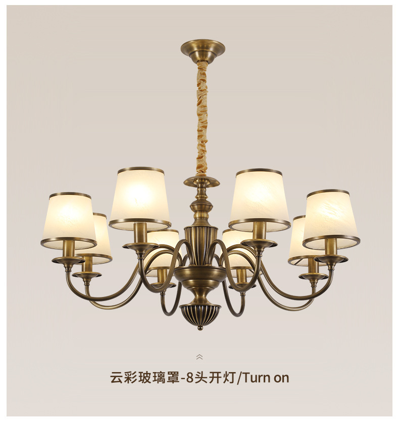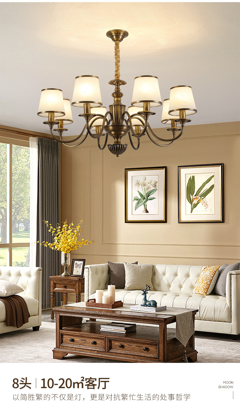 アメリカンオール銅シャンデリアリビングルームライトメインライトシンプルモダンレトロ中世クリームスタイルレストランベッドルームライト66650