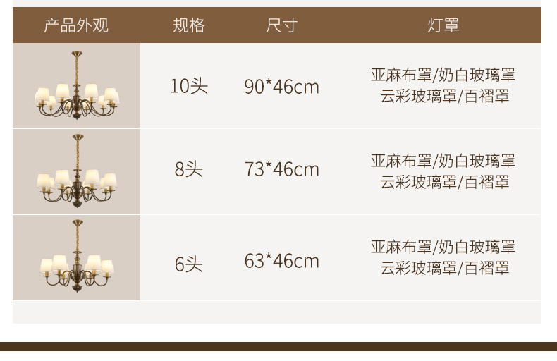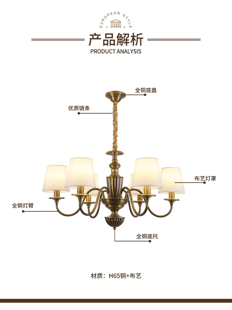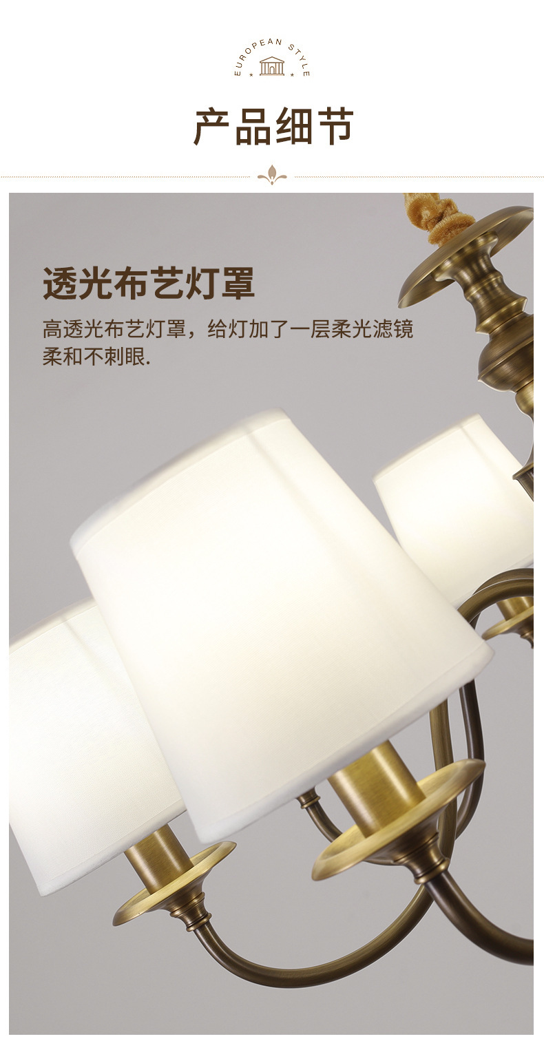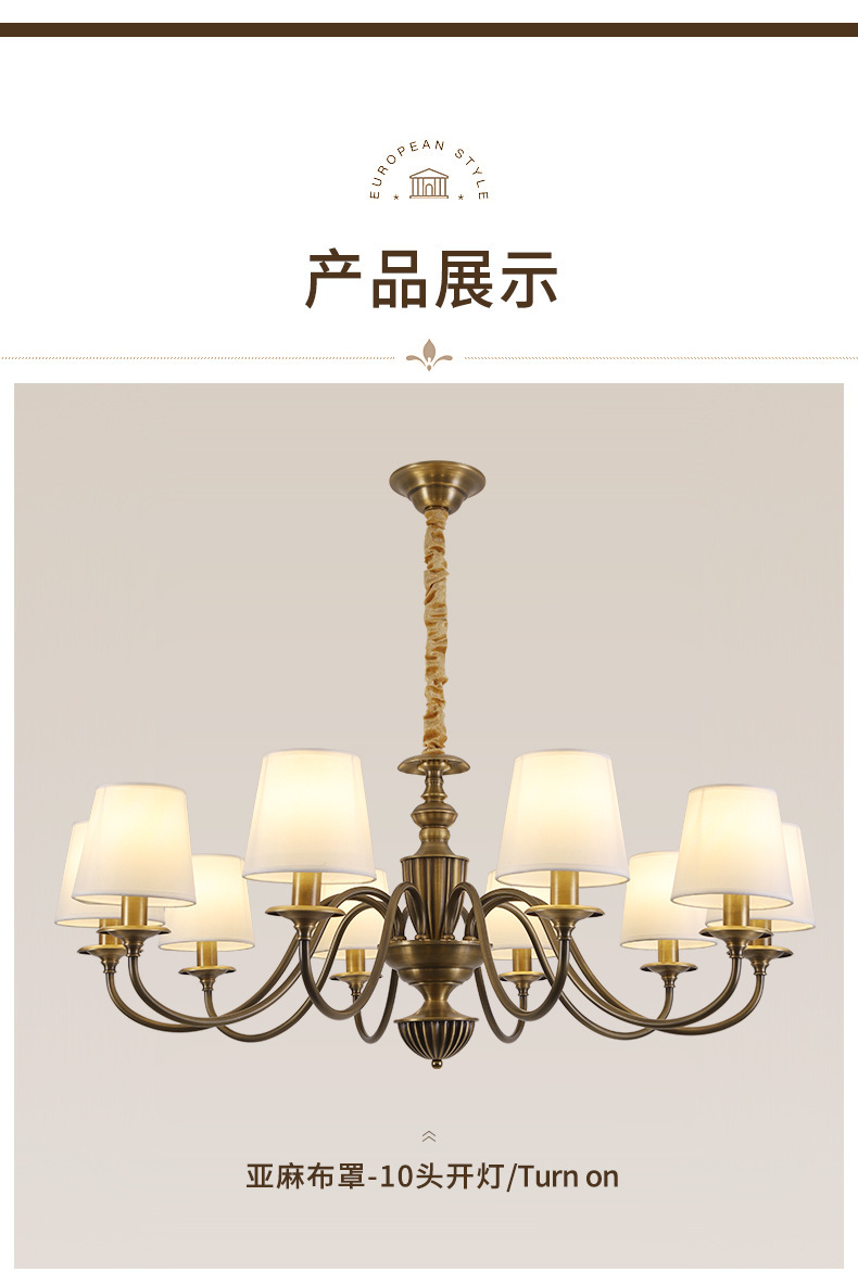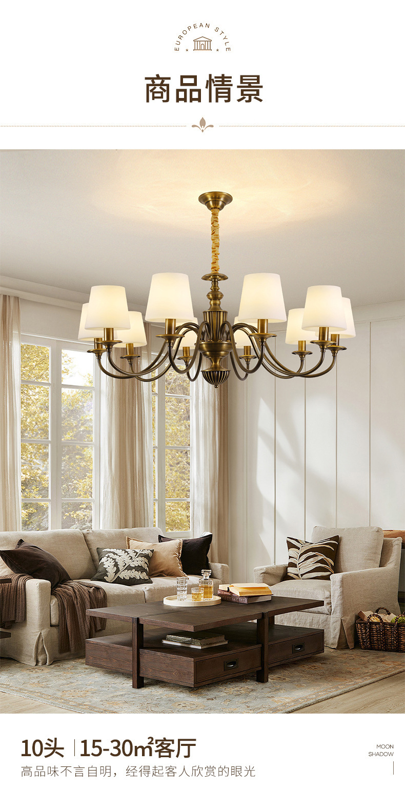 アメリカンオール銅シャンデリアリビングルームライトメインライトシンプルモダンレトロ中世クリームスタイルレストランベッドルームライト66650