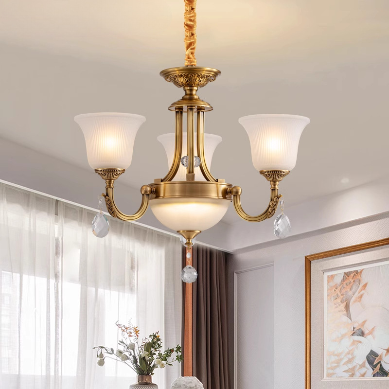 現代のアメリカ式の軽い豪華なシンプルなリビングルームの寝室の照明器具ヨーロッパ式の田園書斎のレストランのガラスのランプカバーの全銅のシャンデリア