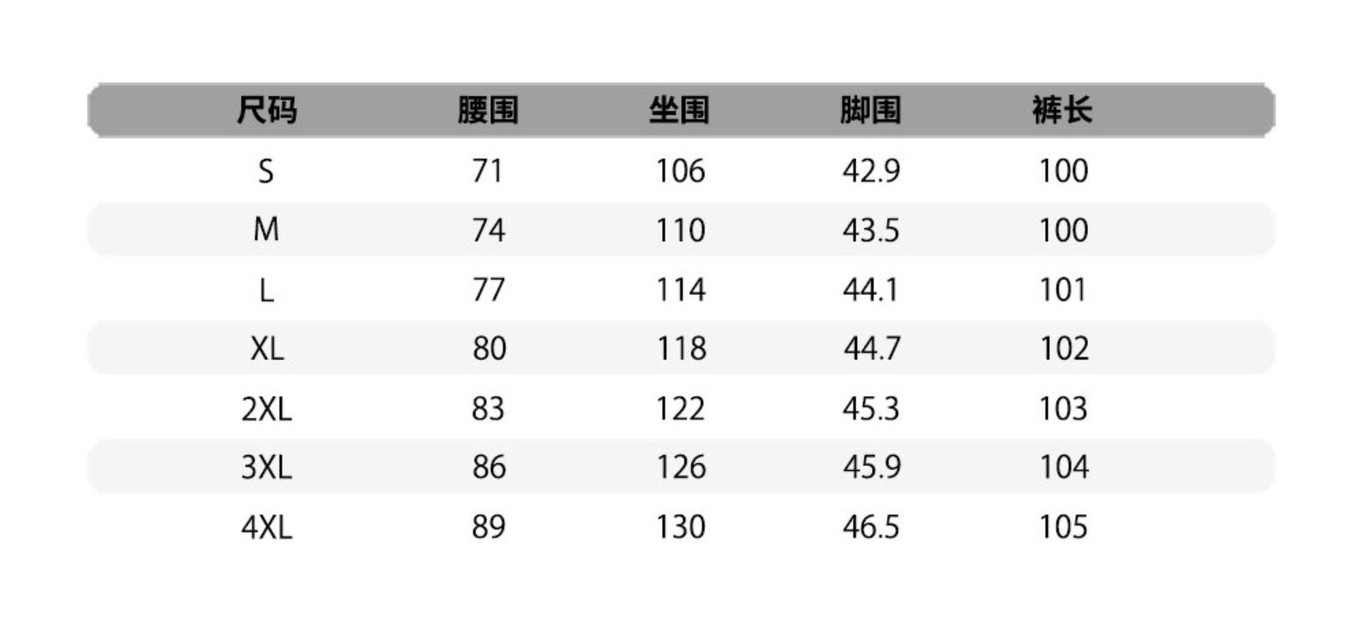 S 47.5-57.5kg,M 57.5-67.5kg,L 67.5-75kg,XL 75-85kg,2XL 85-95kg,3XL 95-102.5kg,4XL 100-110kg
