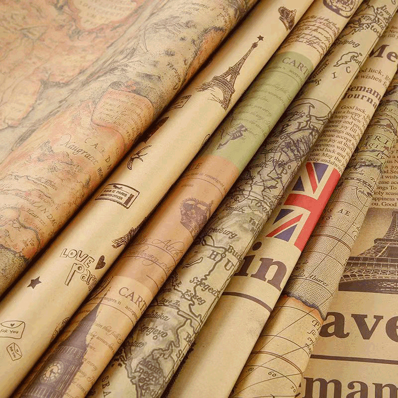 レトロ包装紙プレゼント花花束包装大枚クラフト紙カバー英倫風現物卸売り