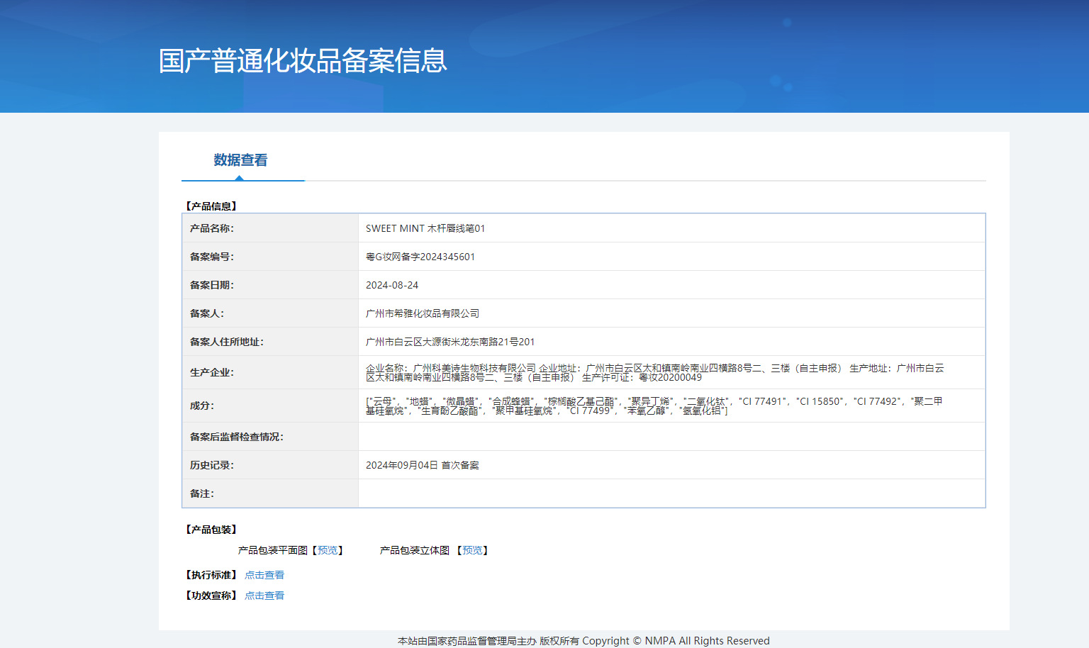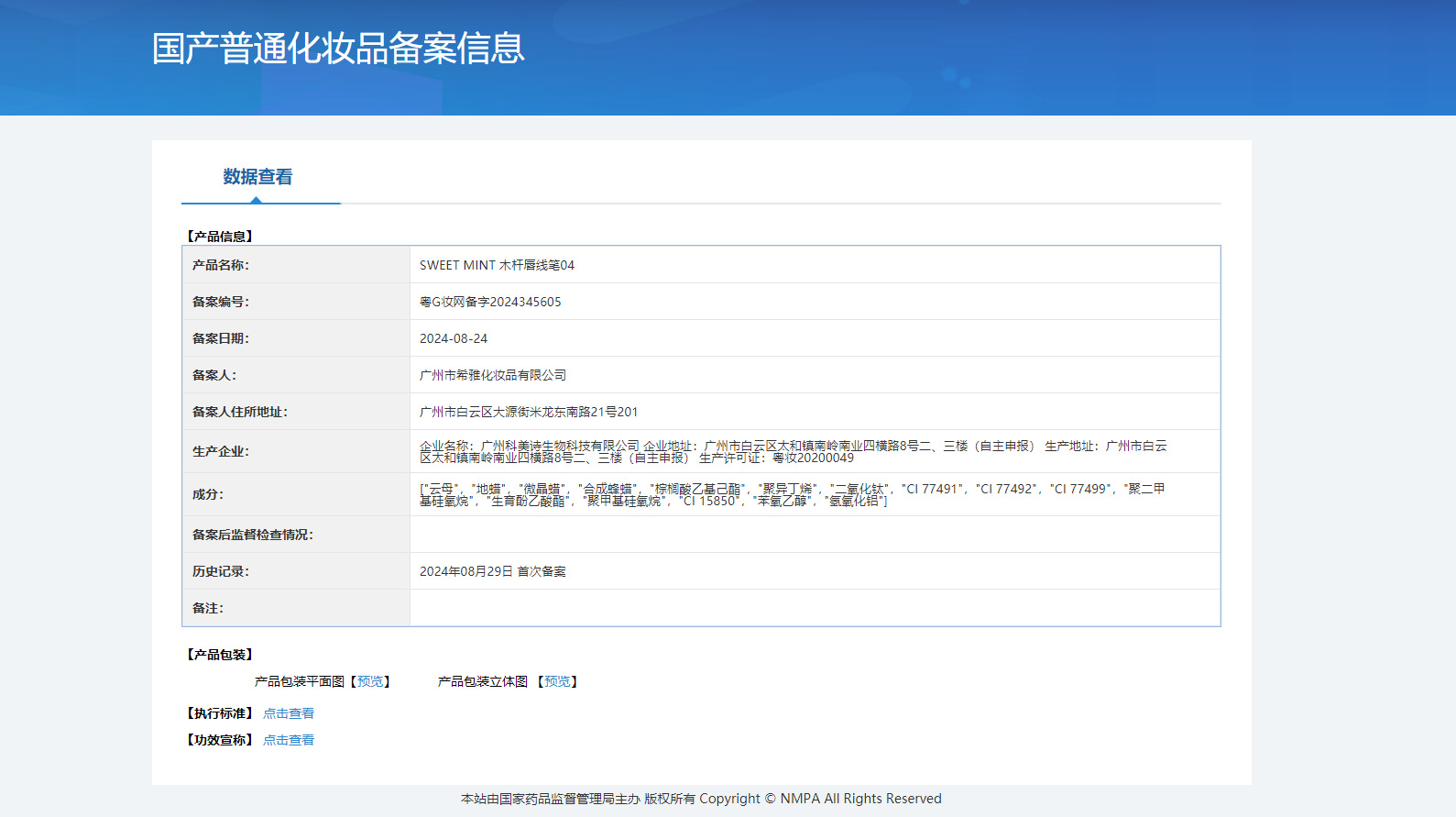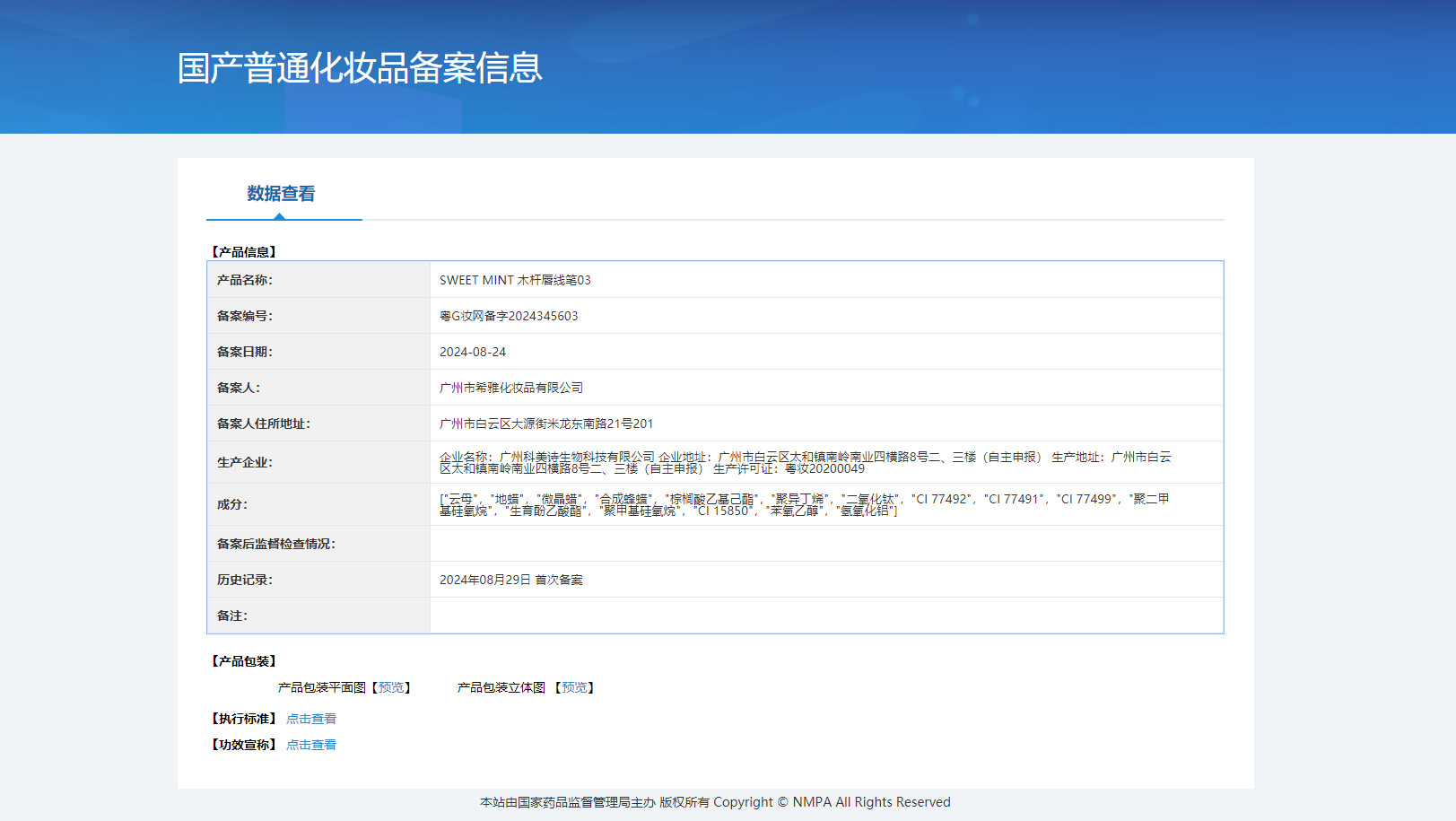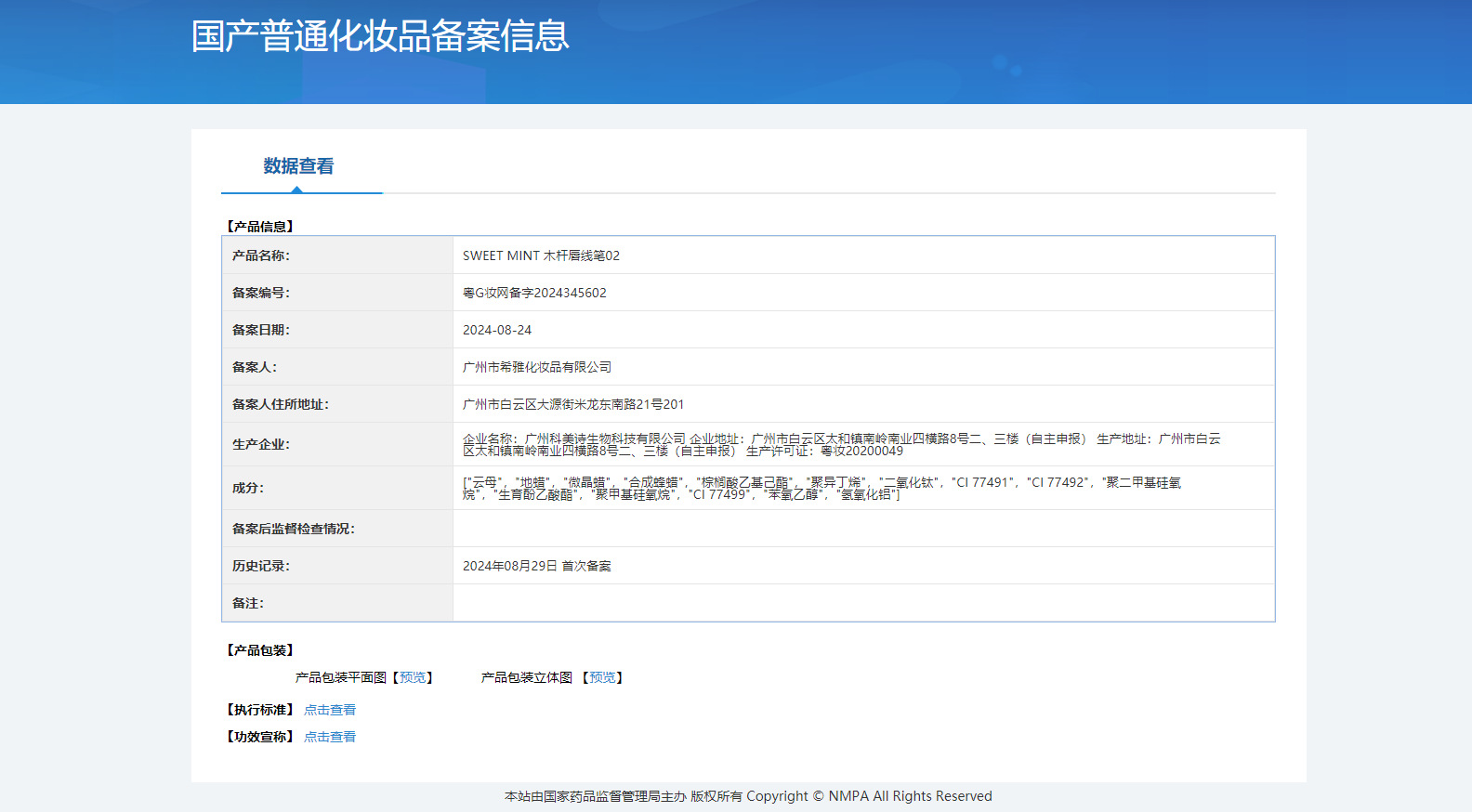 特殊化粧品登録証番号 広東省Gメイクアップネットワーク準備番号2024345602