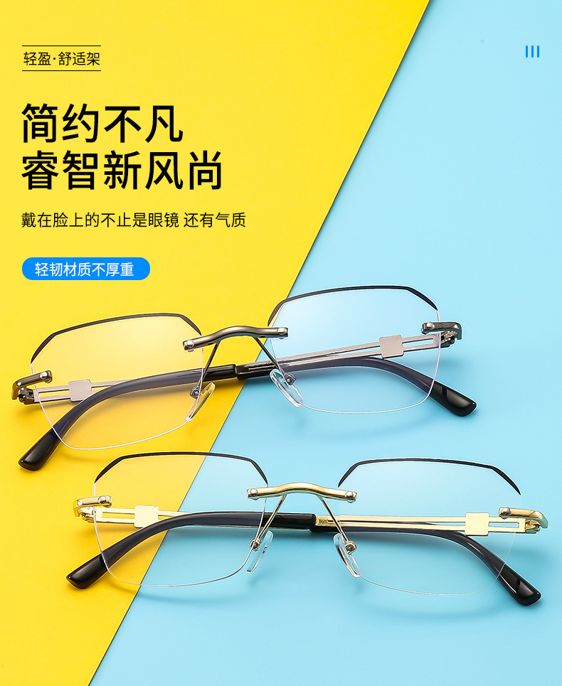 新型ハイエンドビジネスブルーレイ防止老眼鏡ファッションハイビジョン縁なし老眼鏡気質男性メガネブーム
