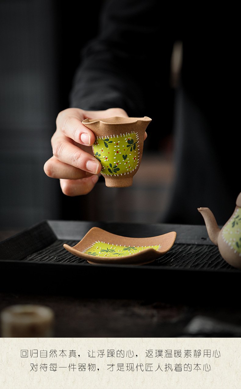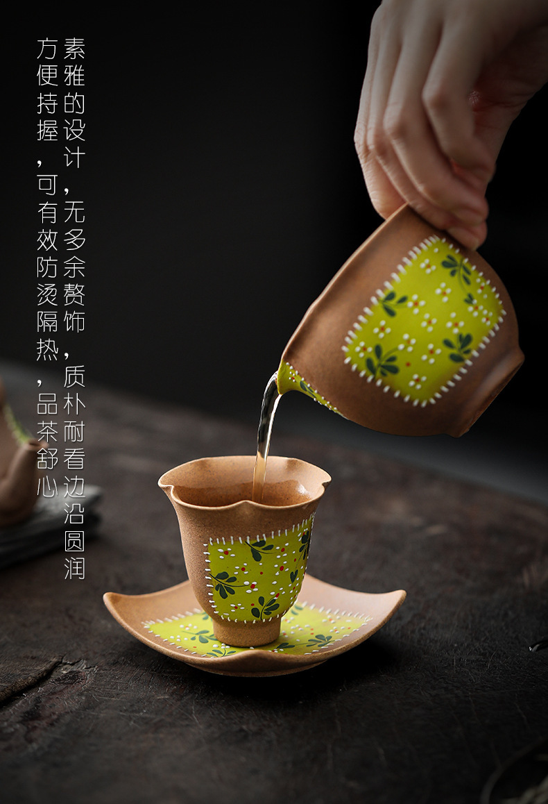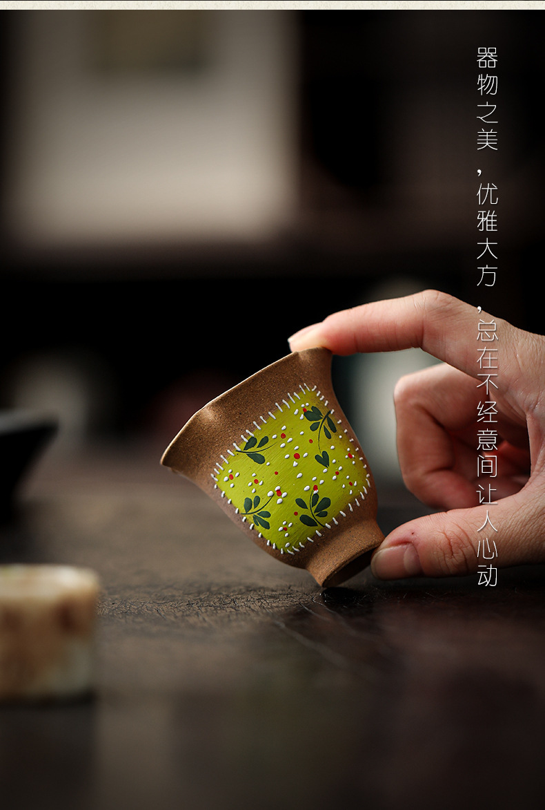 小砕花手描き主人杯陶磁器セット中国式品茗杯復古カップカップカップ付き家庭用お茶を飲む茶器