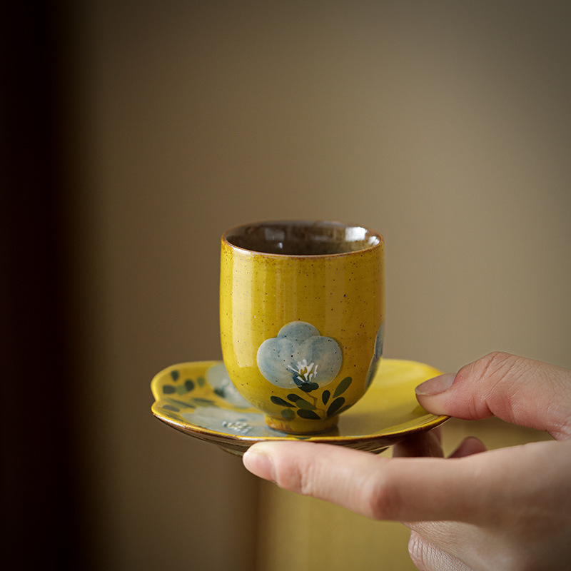 アカシア米黄品茗杯草木灰手描きお茶カップ工夫茶器主人カップ家庭用リビングカップ