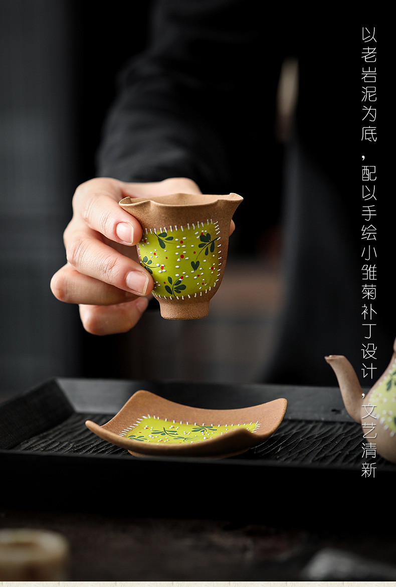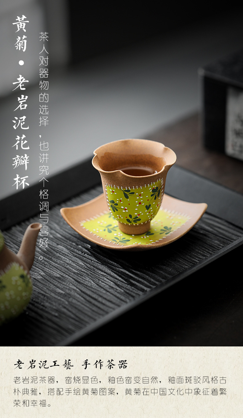老岩泥花口杯中国式創意手描き黄菊品茗杯個人専用お茶カップ女性主人杯