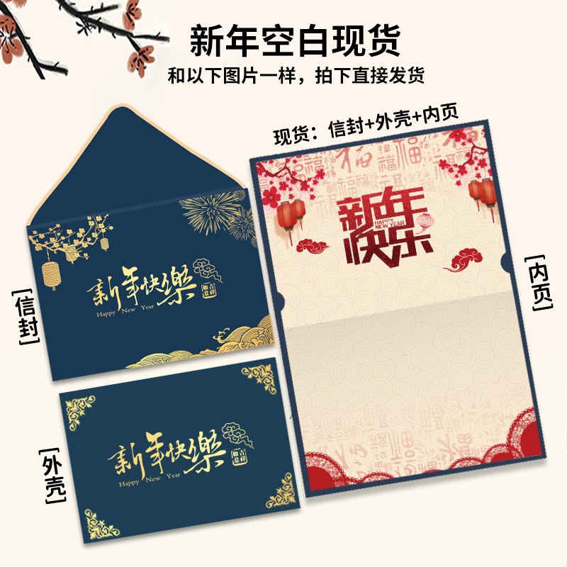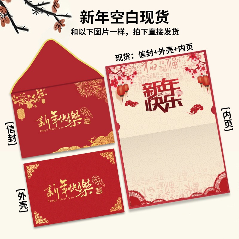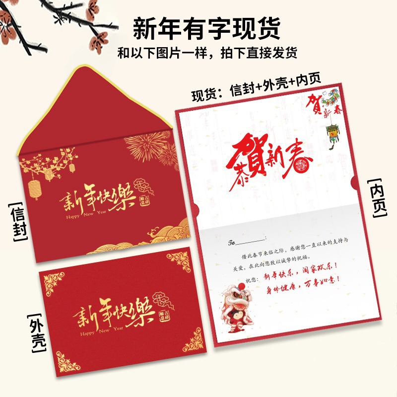 新年のグリーティングカードのカスタマイズされた封筒セット3点セット高級感中国風祝福カード