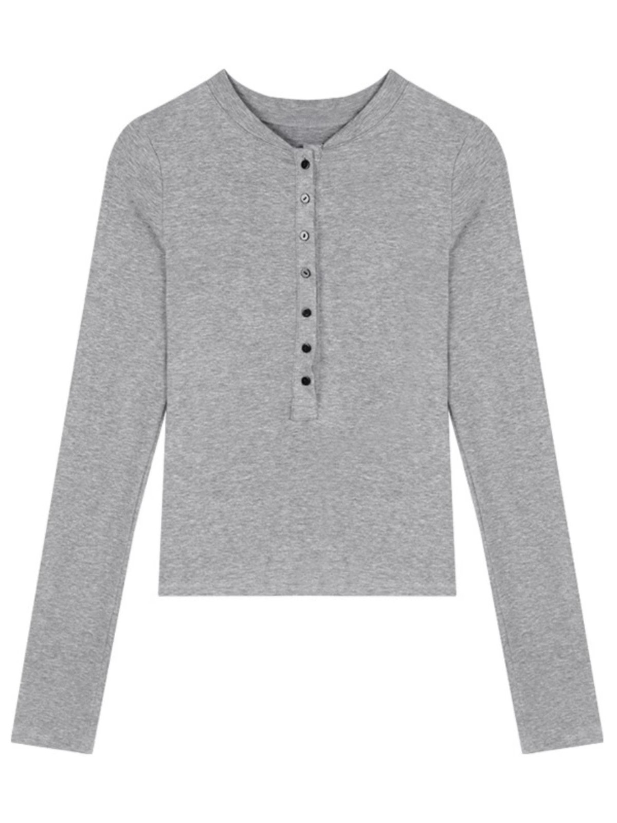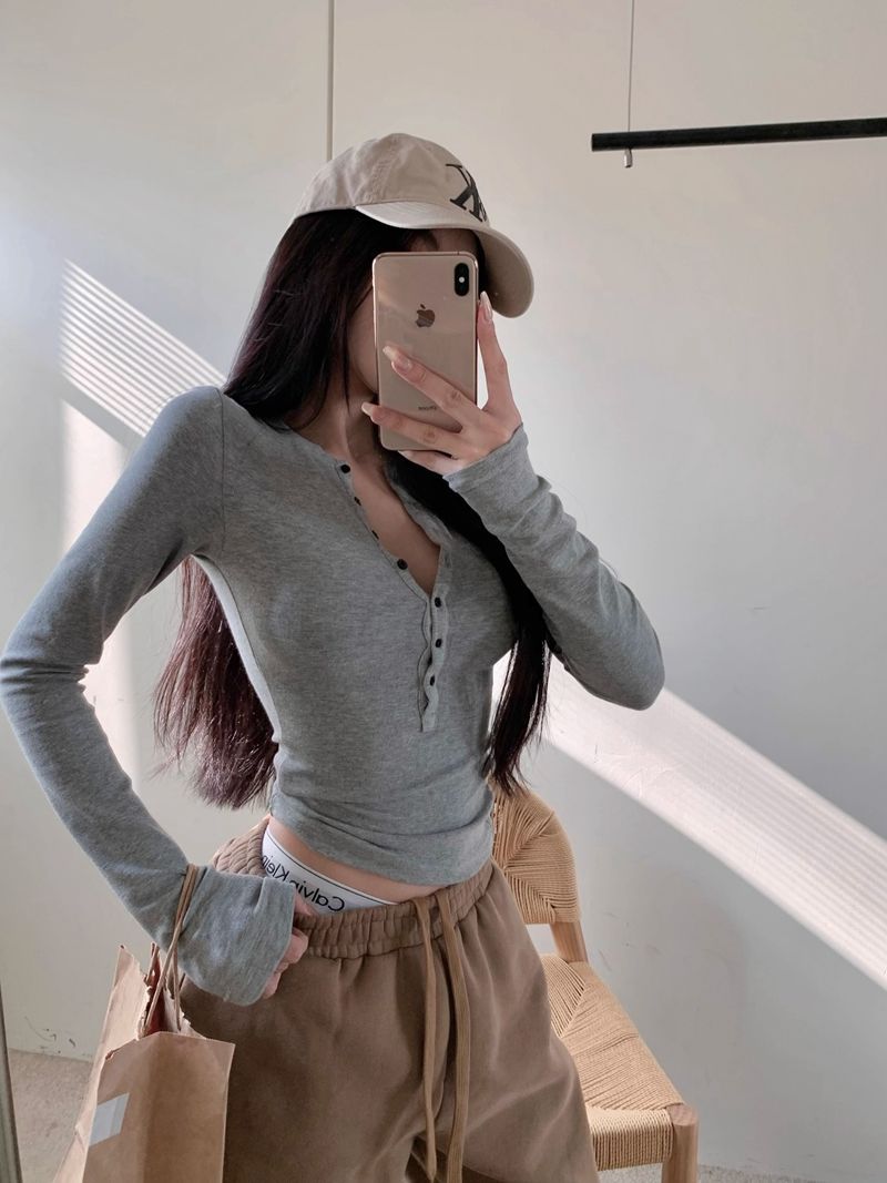 【徳絨毛】ギャルvネック長袖tシャツ女性ボタンデザイン